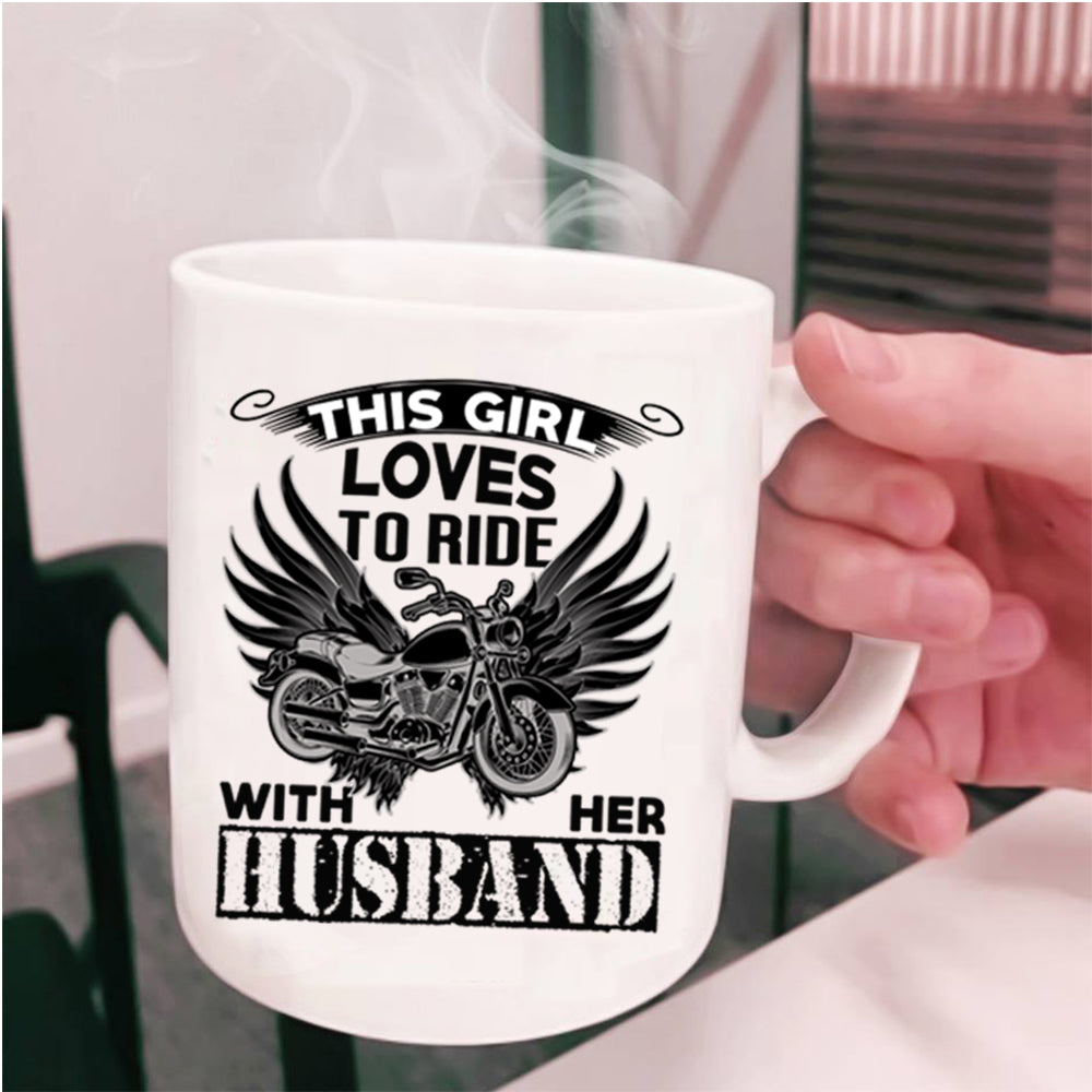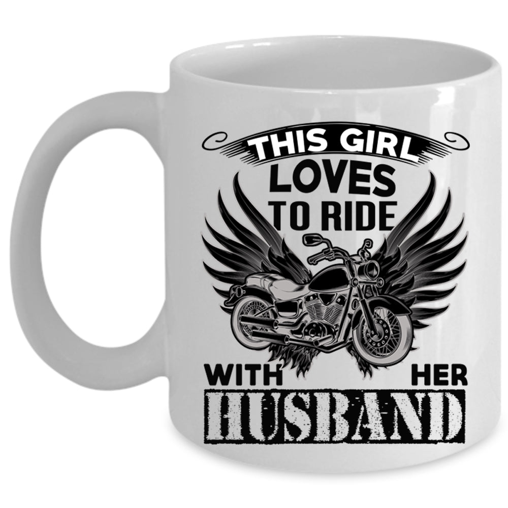 Cute Love Coffee Mug, This Girl Loves To Ride With Her Husband Cup