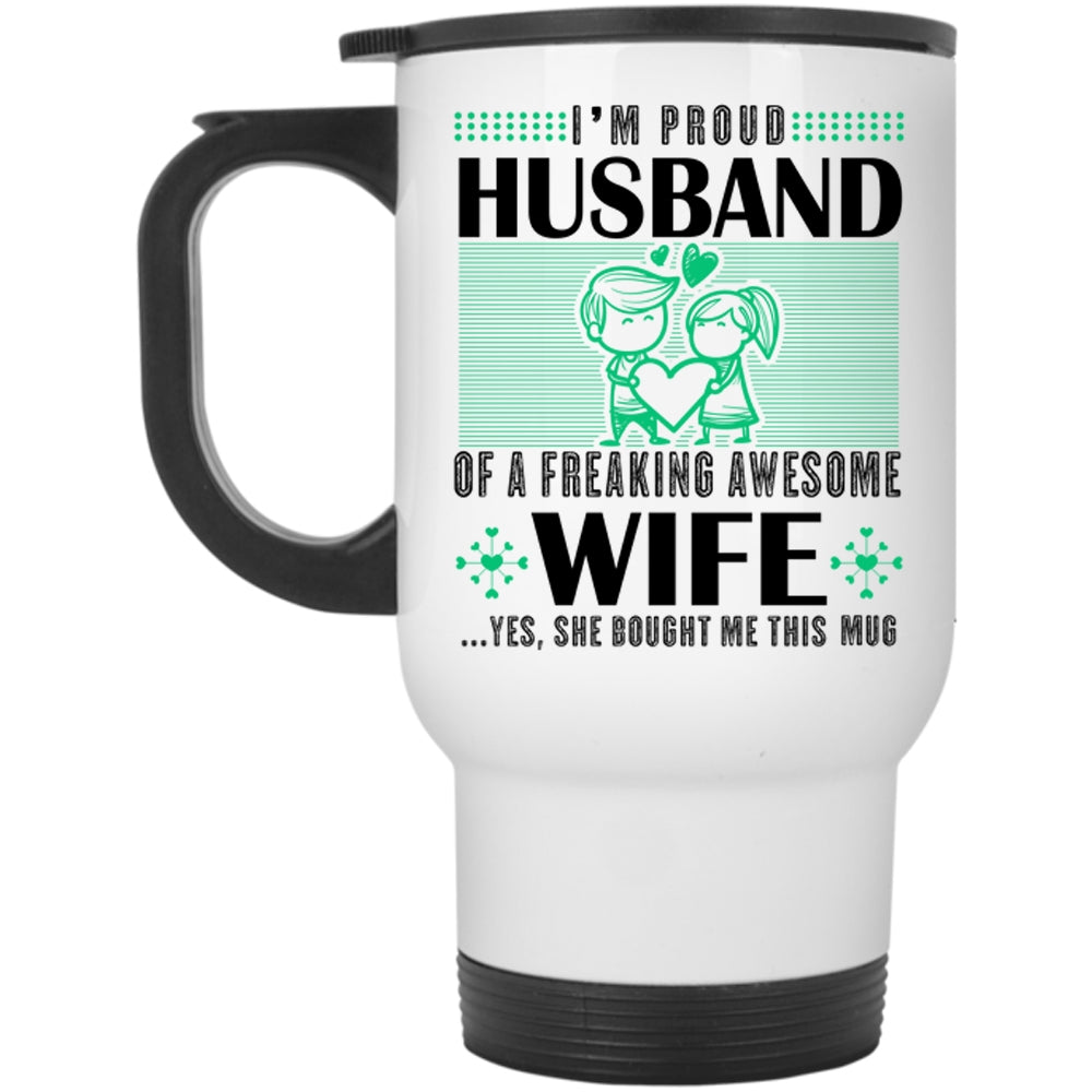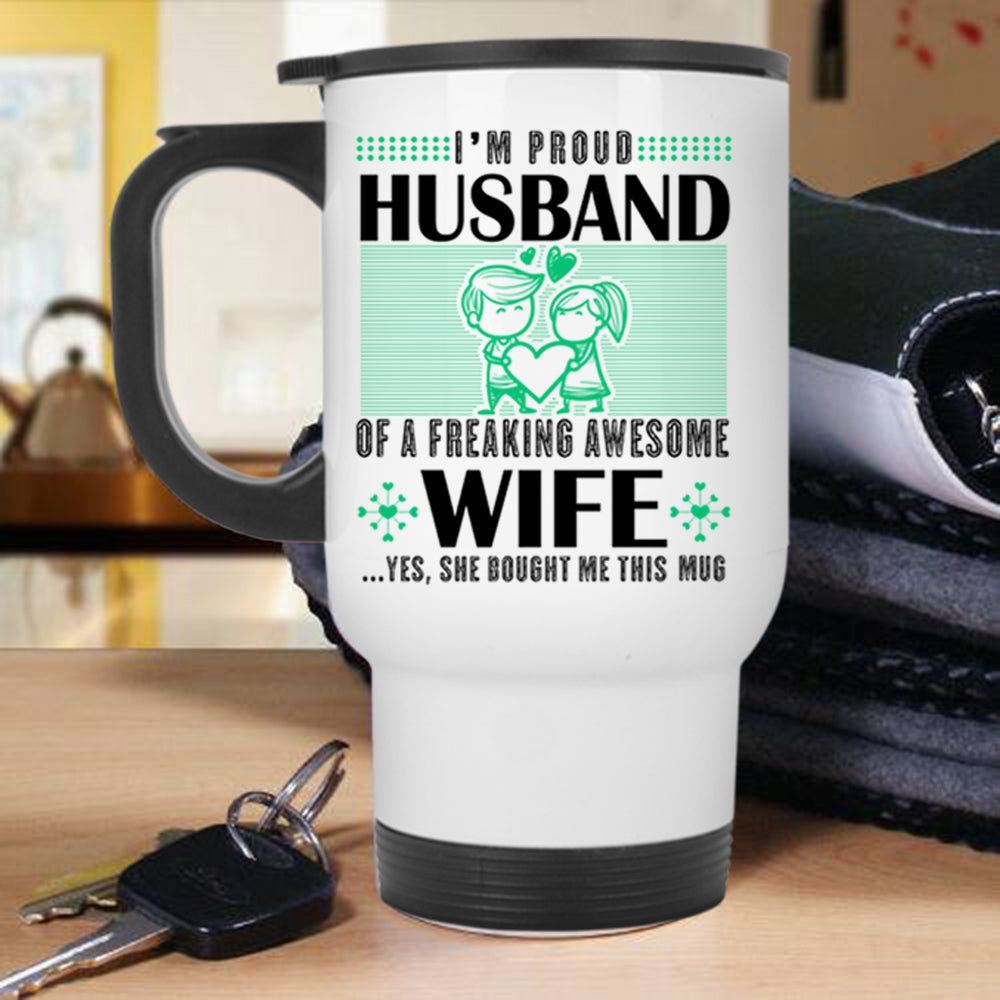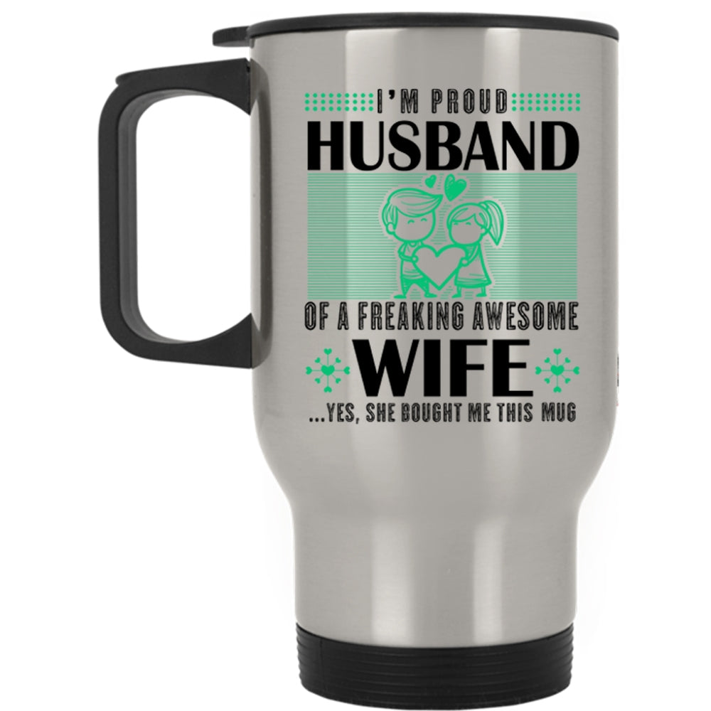 Cute Love Travel Mug, I'm Proud Husband Of An Awesome Wife Mug