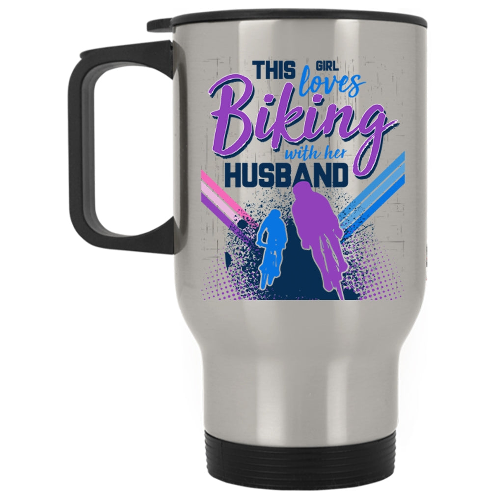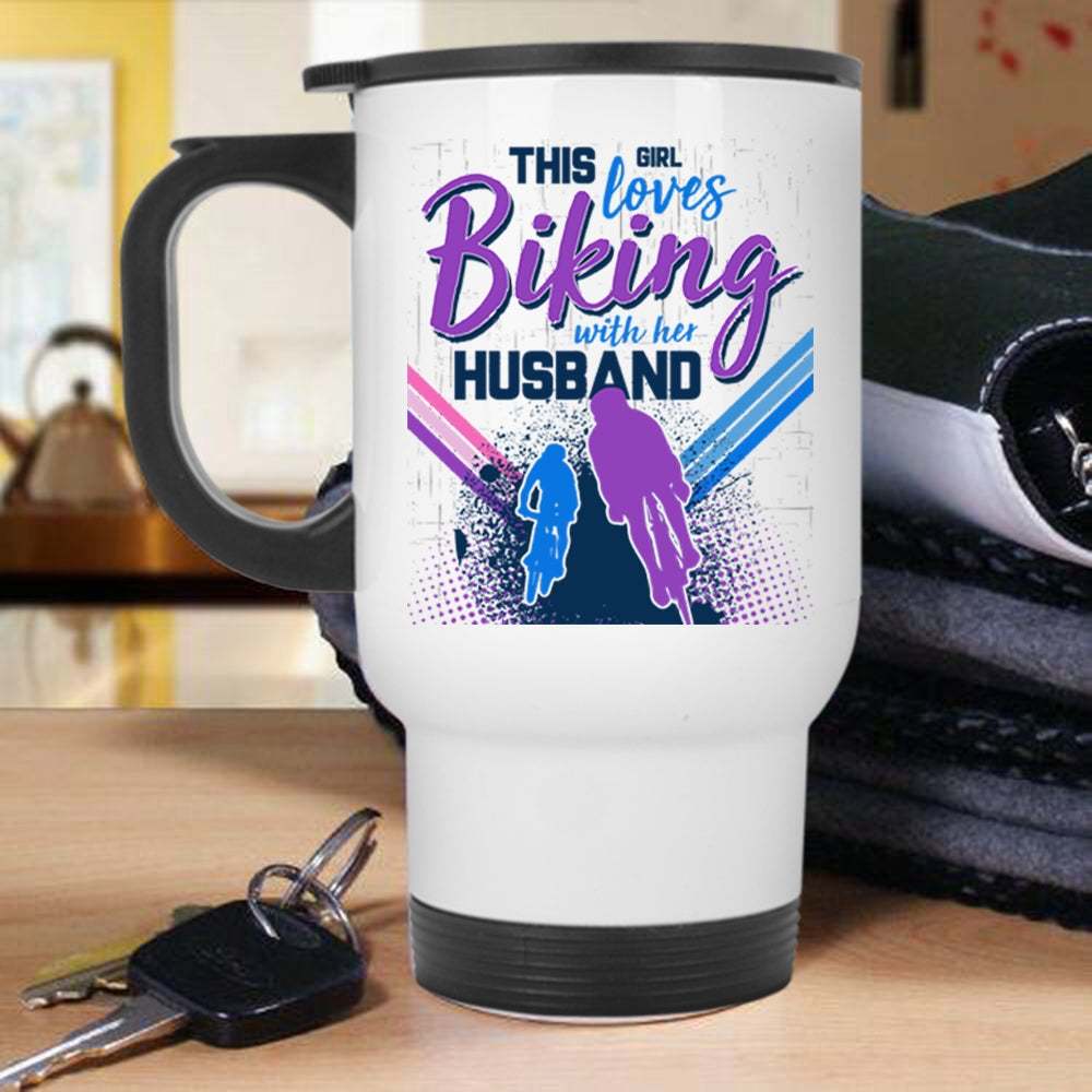 Cute Love Travel Mug, This Girl Loves Biking With Her Husband Mug