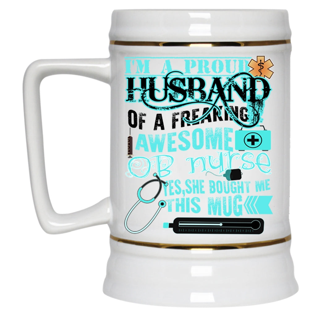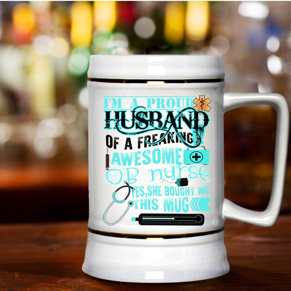 Cute Nurse's Husband Beer Stein 22oz, I'm A Proud Husband Of An OB Nurse Beer Mug