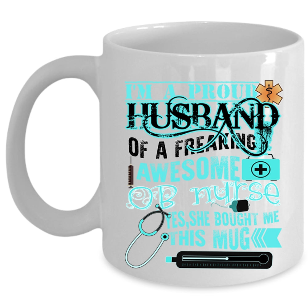 Cute Nurse's Husband Coffee Mug, I'm A Proud Husband Of An OB Nurse Cup