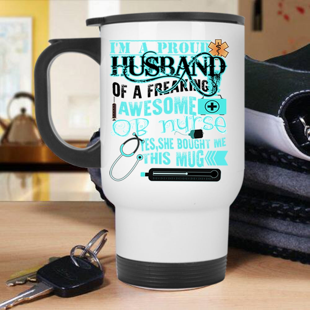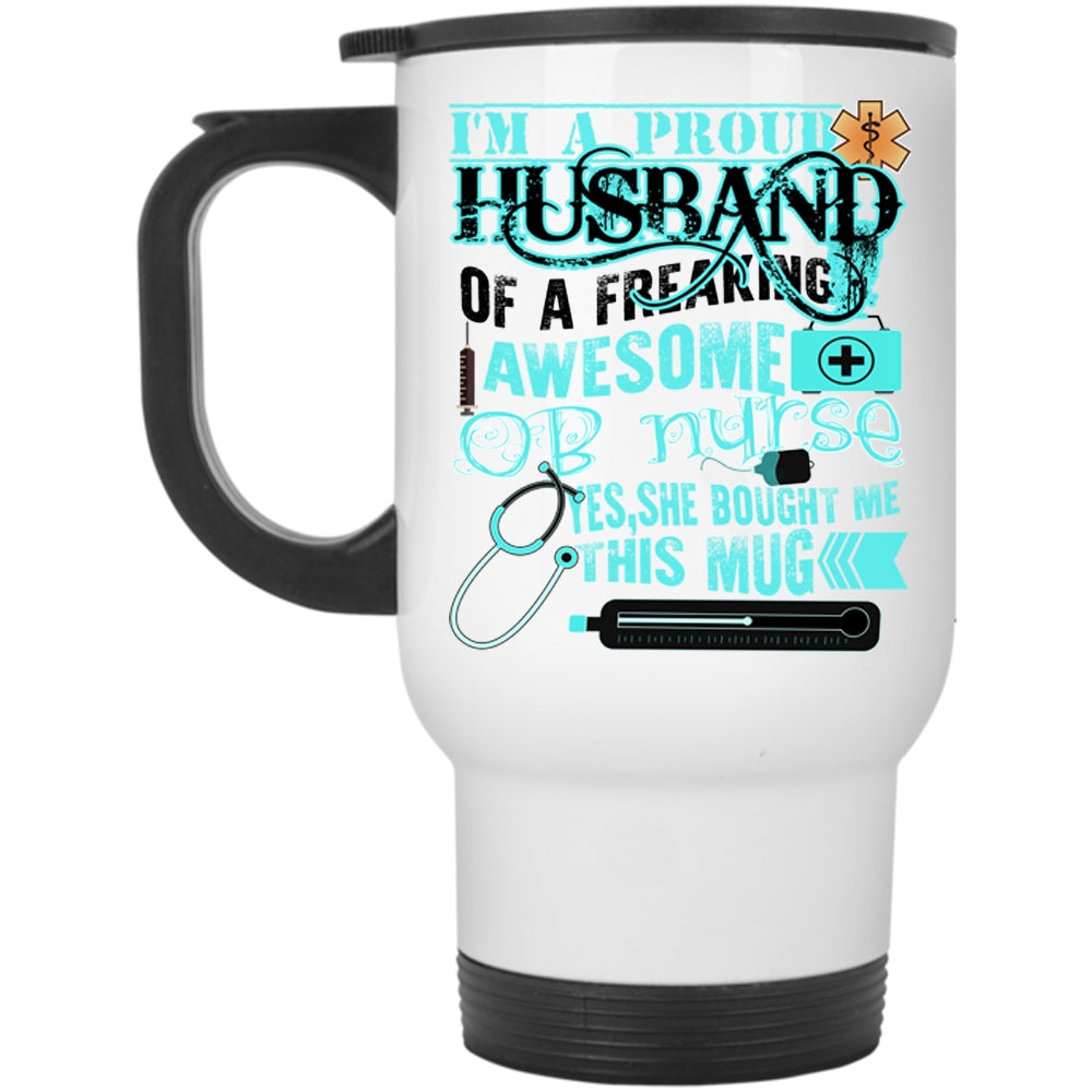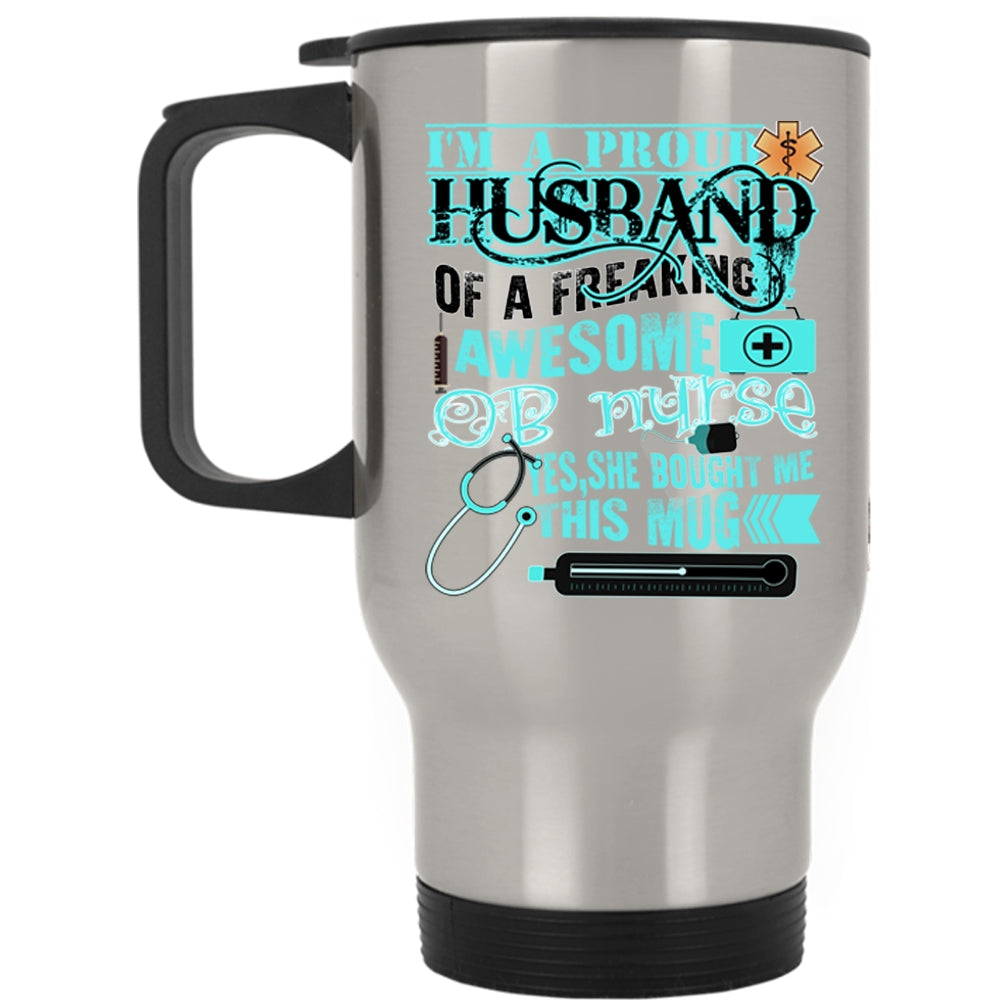 Cute Nurse's Husband Travel Mug, I'm A Proud Husband Of An OB Nurse Mug