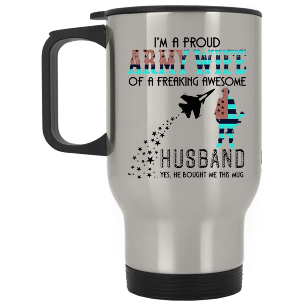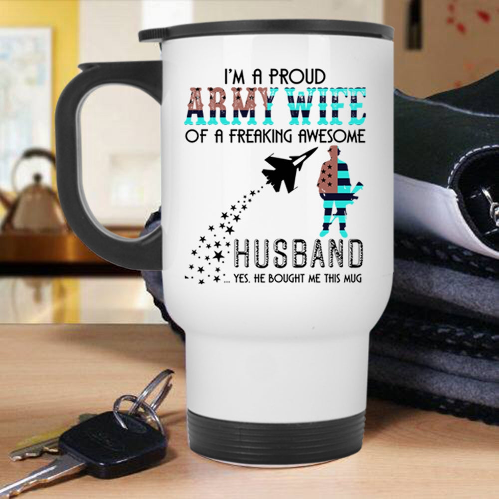 Cute Travel Mug, Proud Army Wife Of An Awesome Husband Mug