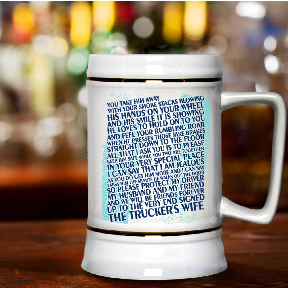 Cute Trucker's Wife Beer Stein 22oz, The Trucker's Wife Beer Mug