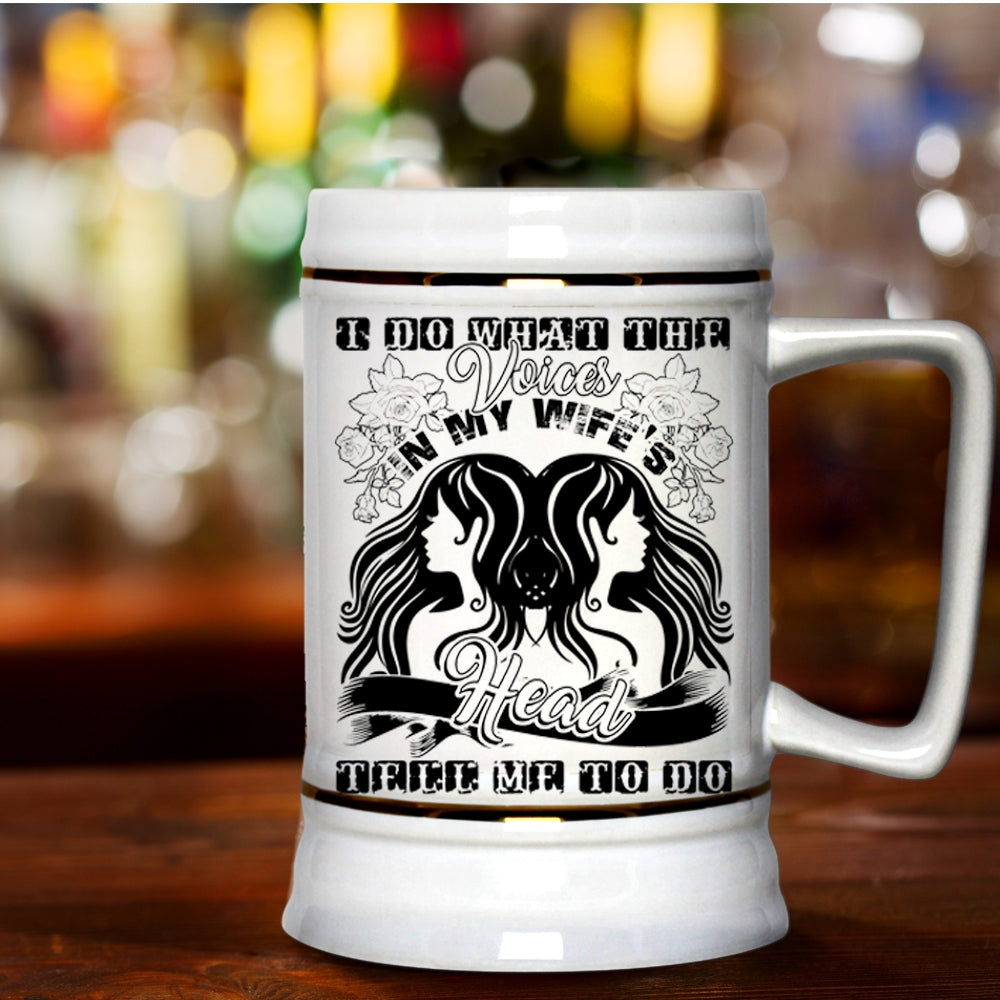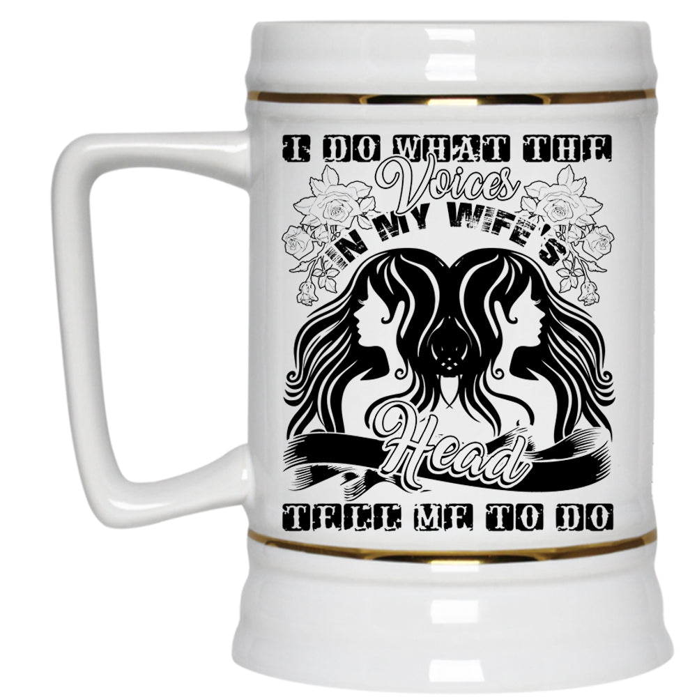 Cute Wife Beer Stein 22oz, I Do What The Voices In My Wife's Head Beer Mug