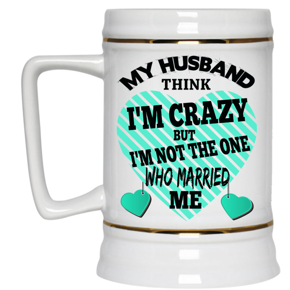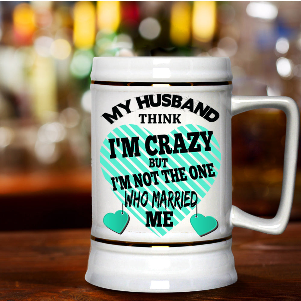 Cute Wife Beer Stein 22oz, My Husband Think I'm Crazy Beer Mug