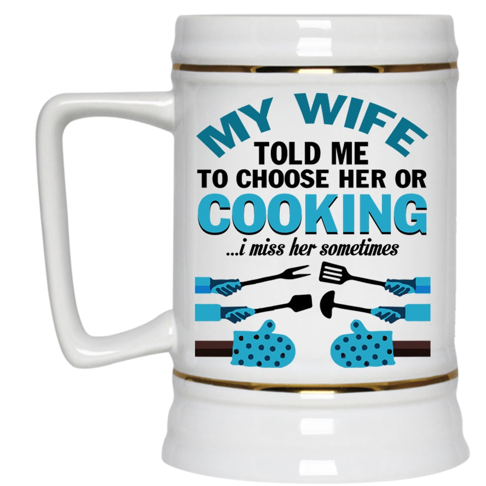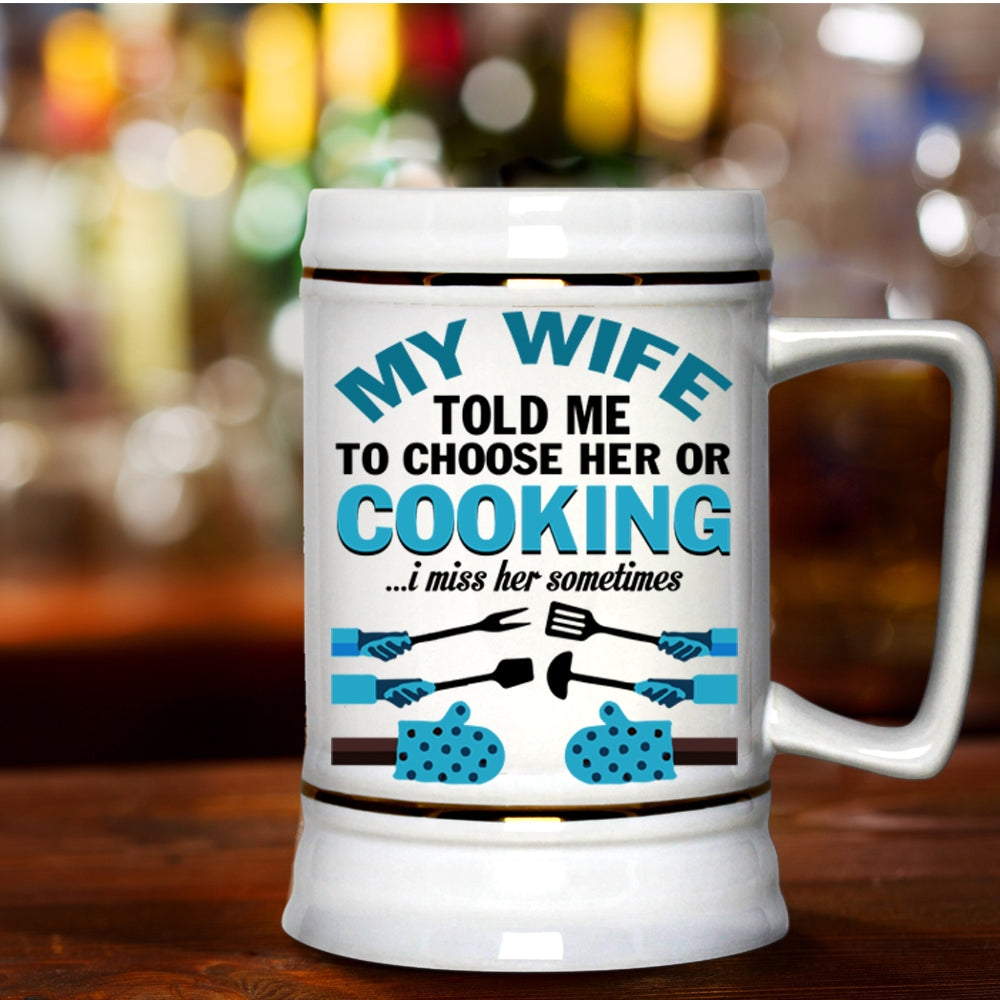 Cute Wife Beer Stein 22oz, My Wife Told Me To Choose Her Or Cooking Beer Mug