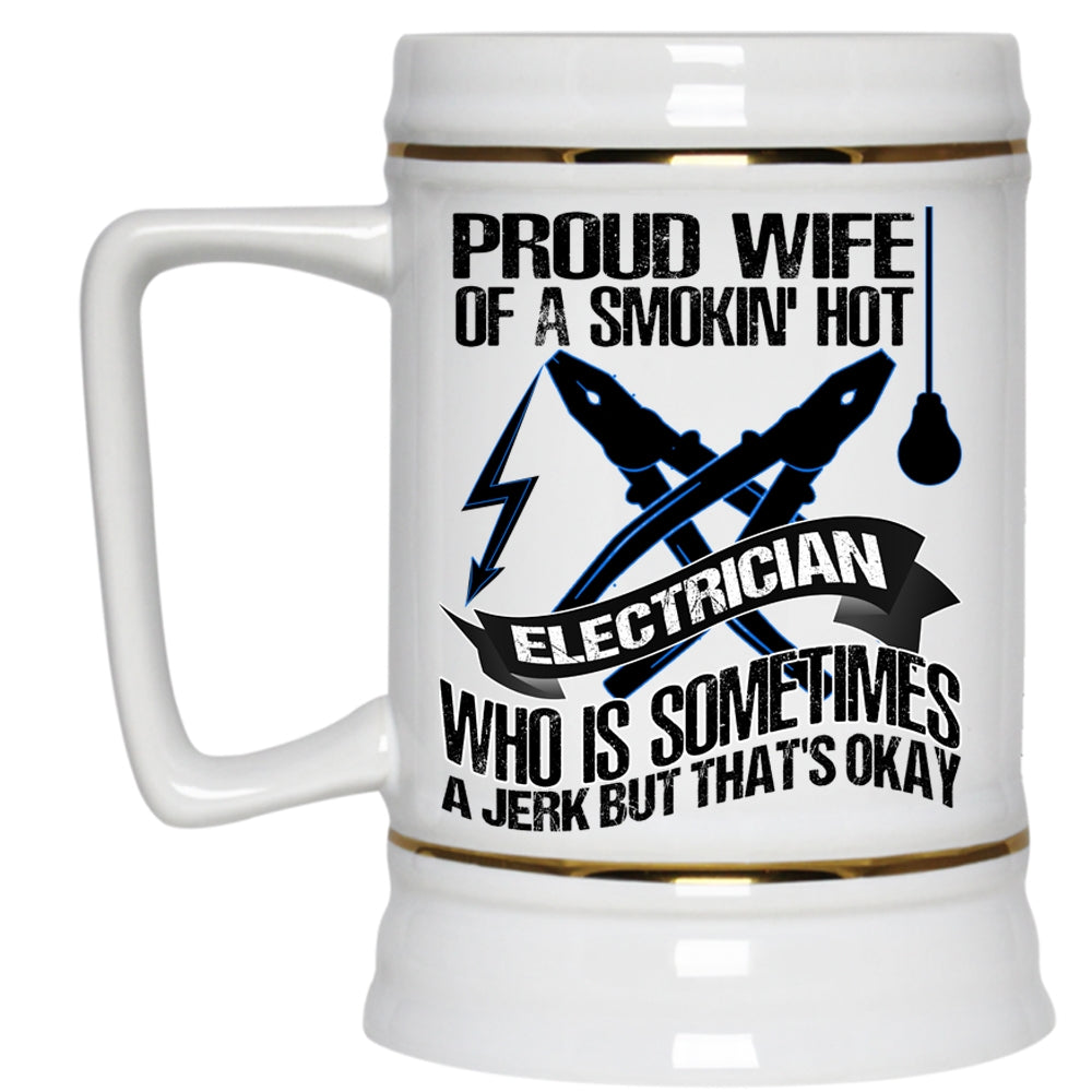 Cute Wife Beer Stein 22oz, Proud Wife Of A Smoking Hot Electrician Beer Mug
