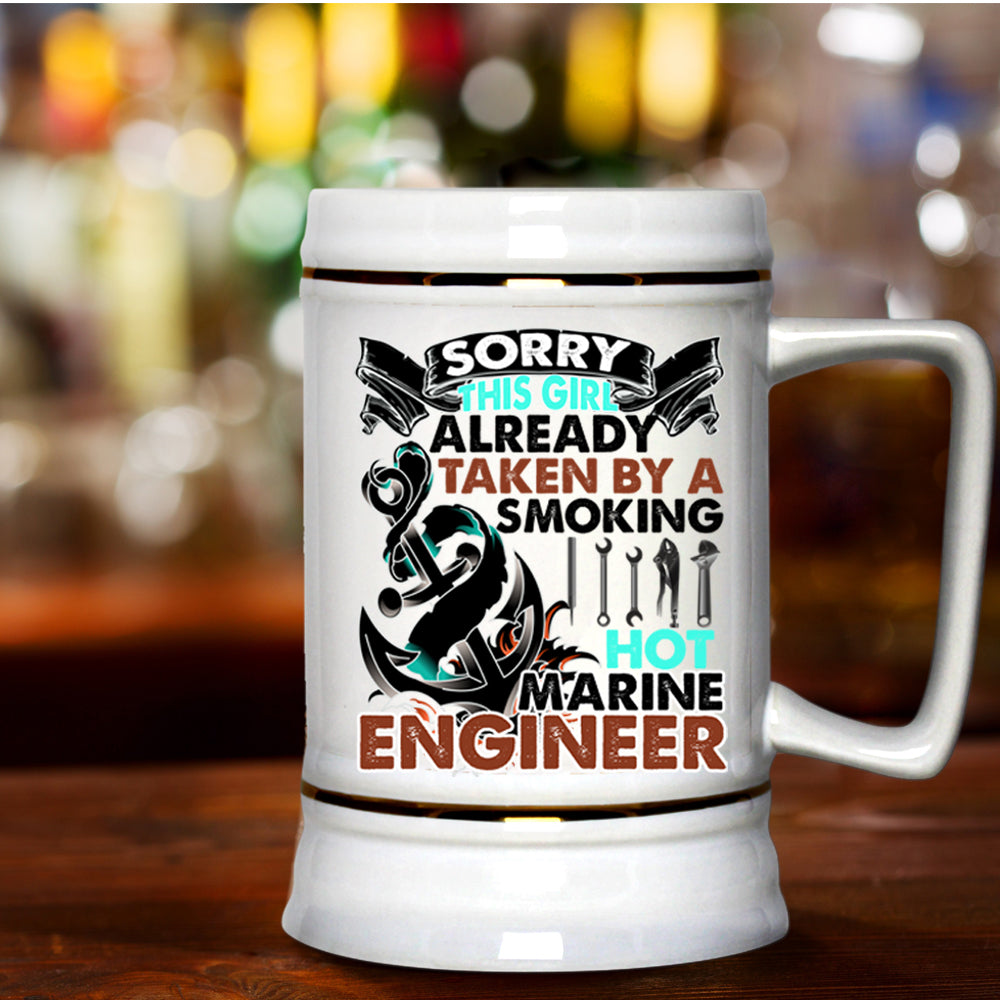 Cute Wife Beer Stein 22oz, Taken By A Hot Marine Engineer Beer Mug
