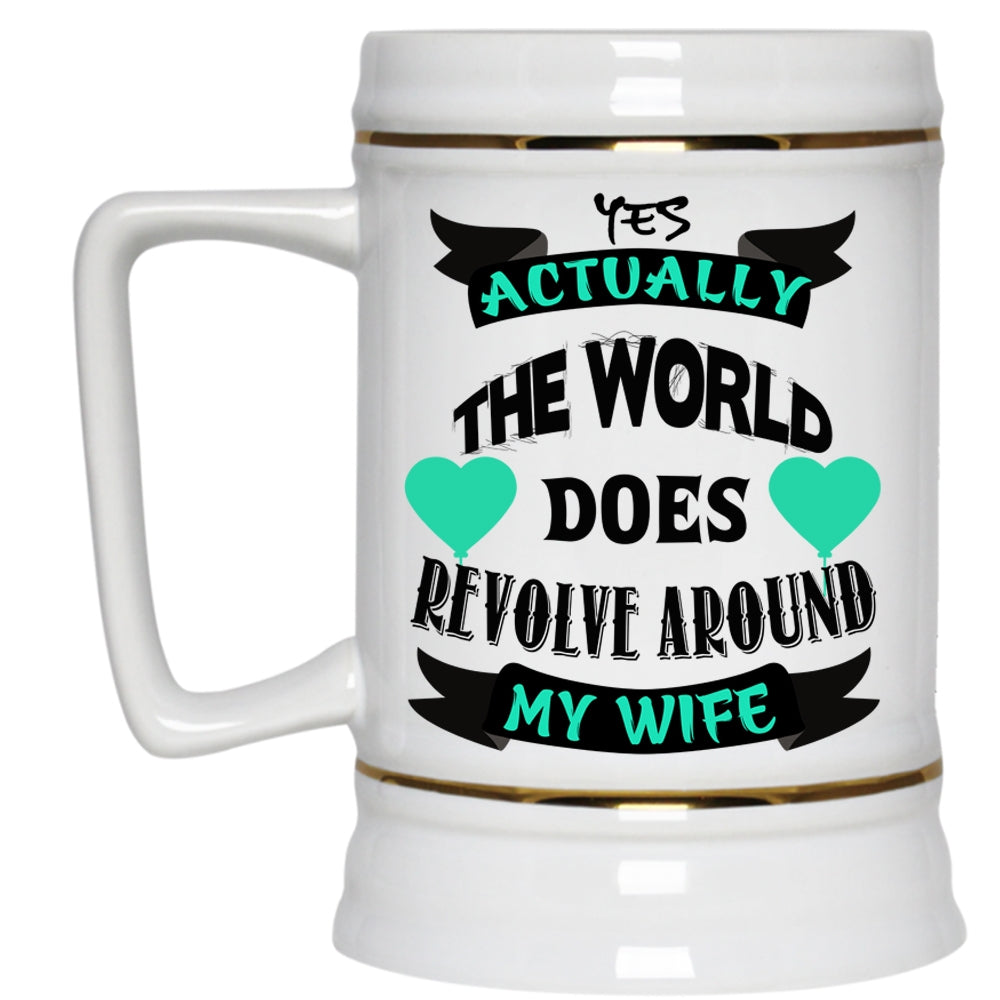 Cute Wife Beer Stein 22oz, The World Does Revolve Around My Wife Beer Mug