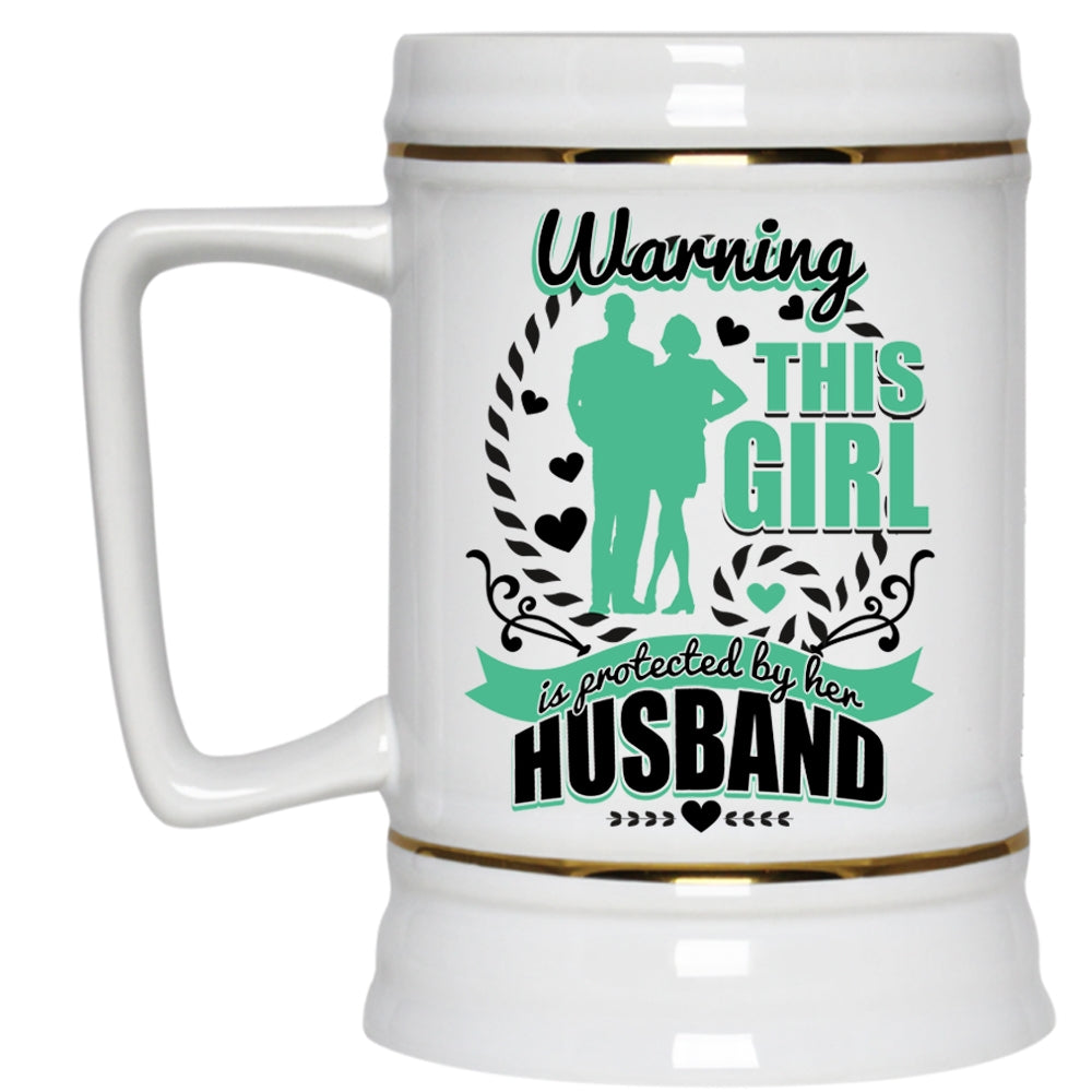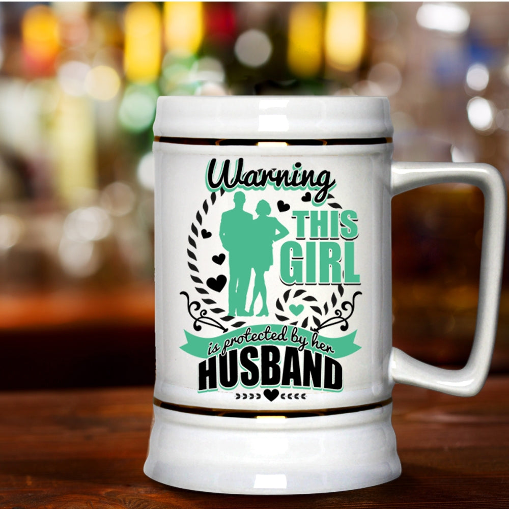 Cute Wife Beer Stein 22oz, This Girl Is Protected By Her Husband Beer Mug