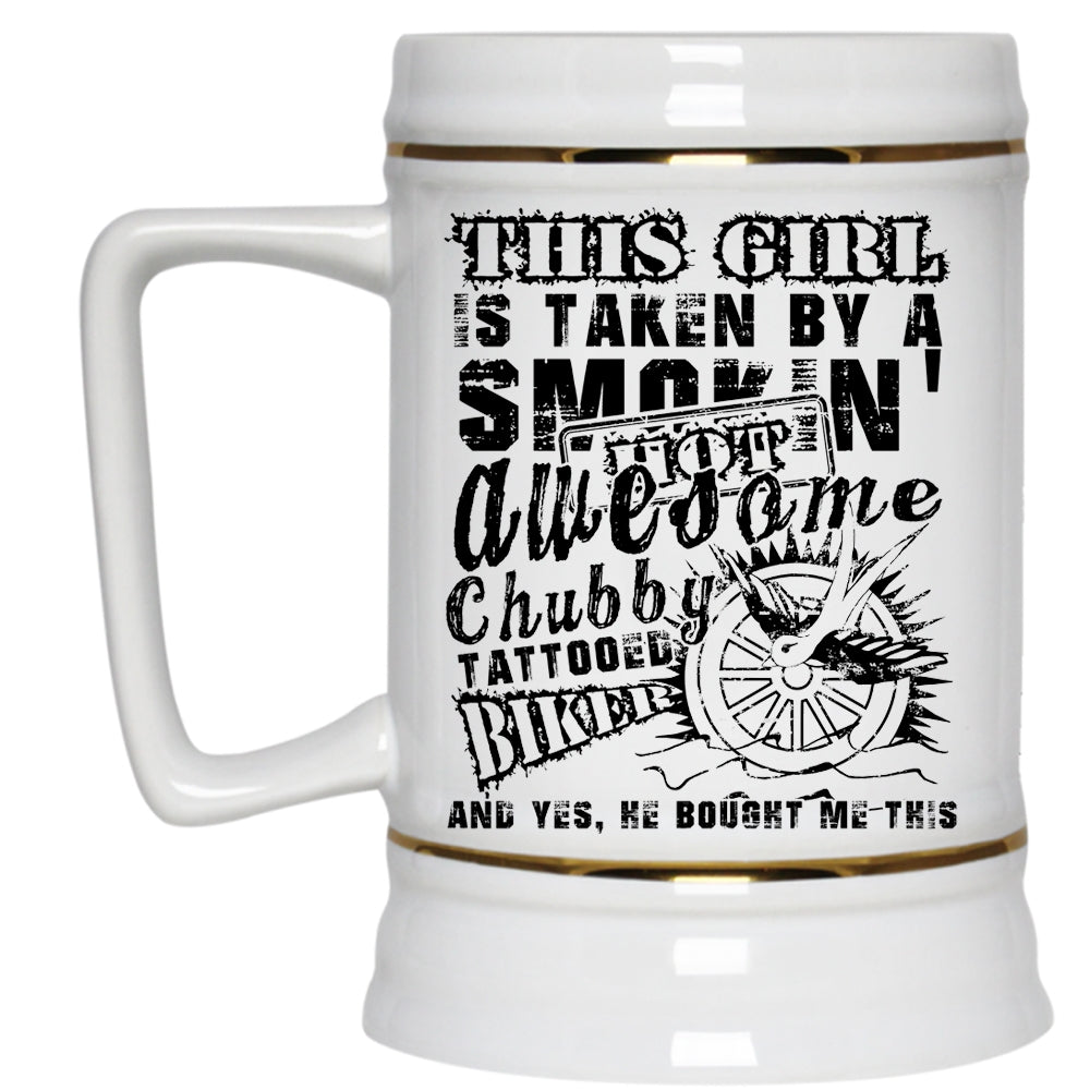 Cute Wife Beer Stein 22oz, This Girl Is Taken By A Chubby Tattooed Biker Beer Mug