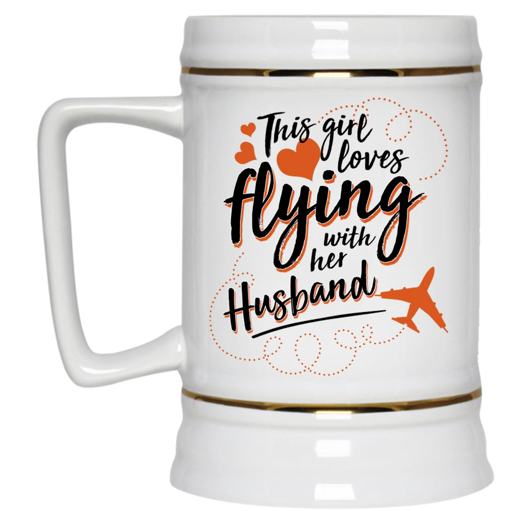 Cute Wife Beer Stein 22oz, This Girl Loves Flying With Her Husband Beer Mug