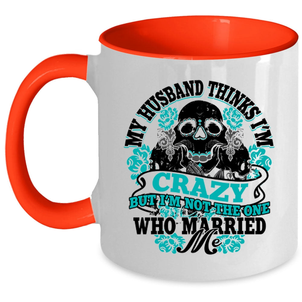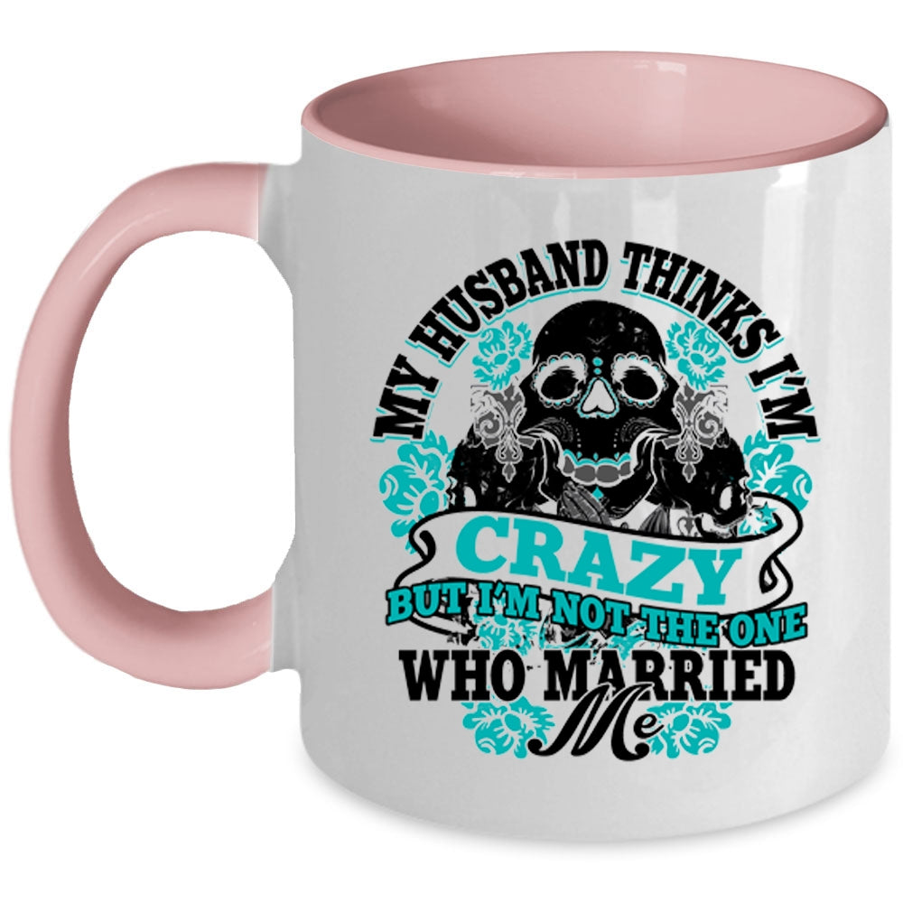 Cute Wife Coffee Mug, My Husband Thinks I'm Crazy Accent Mug