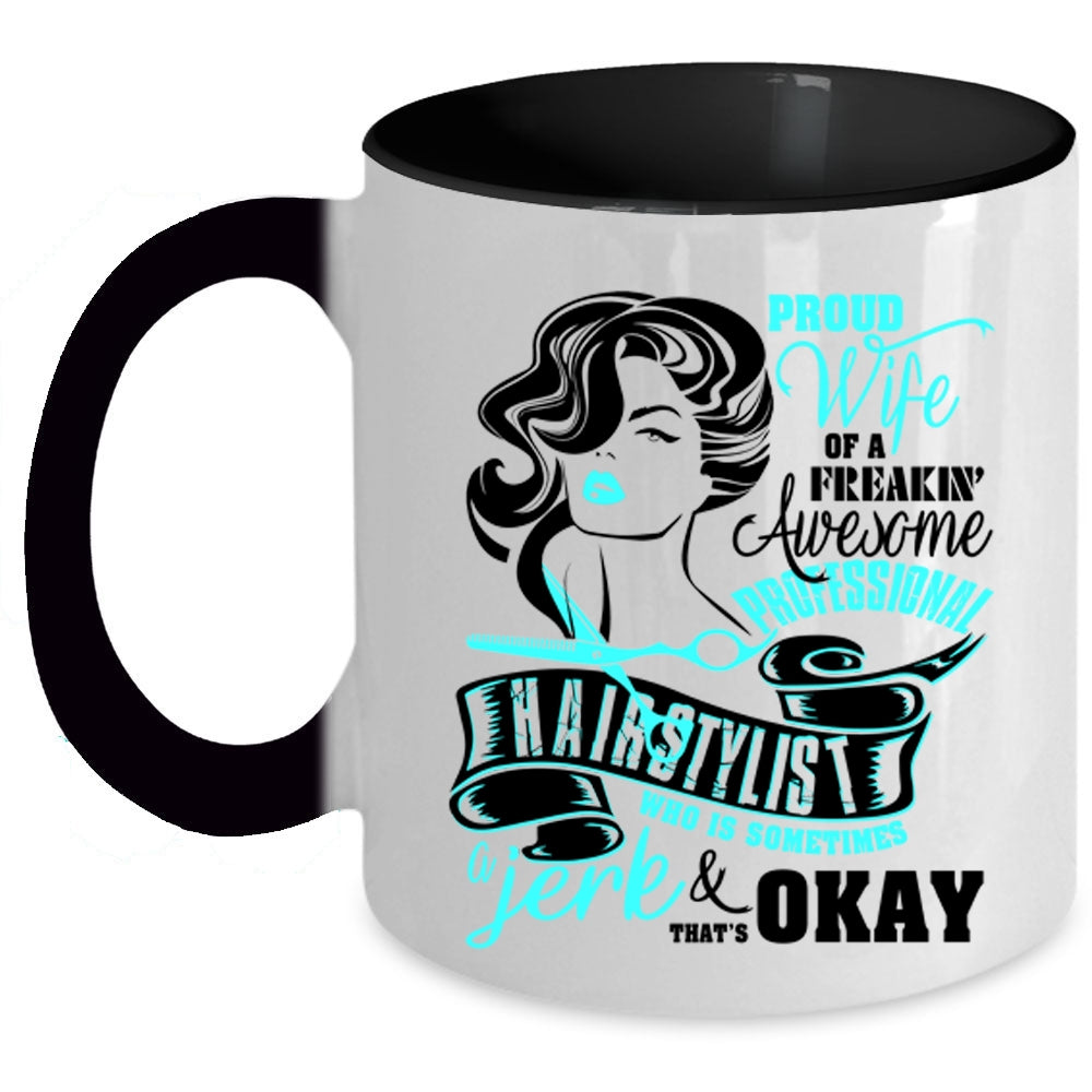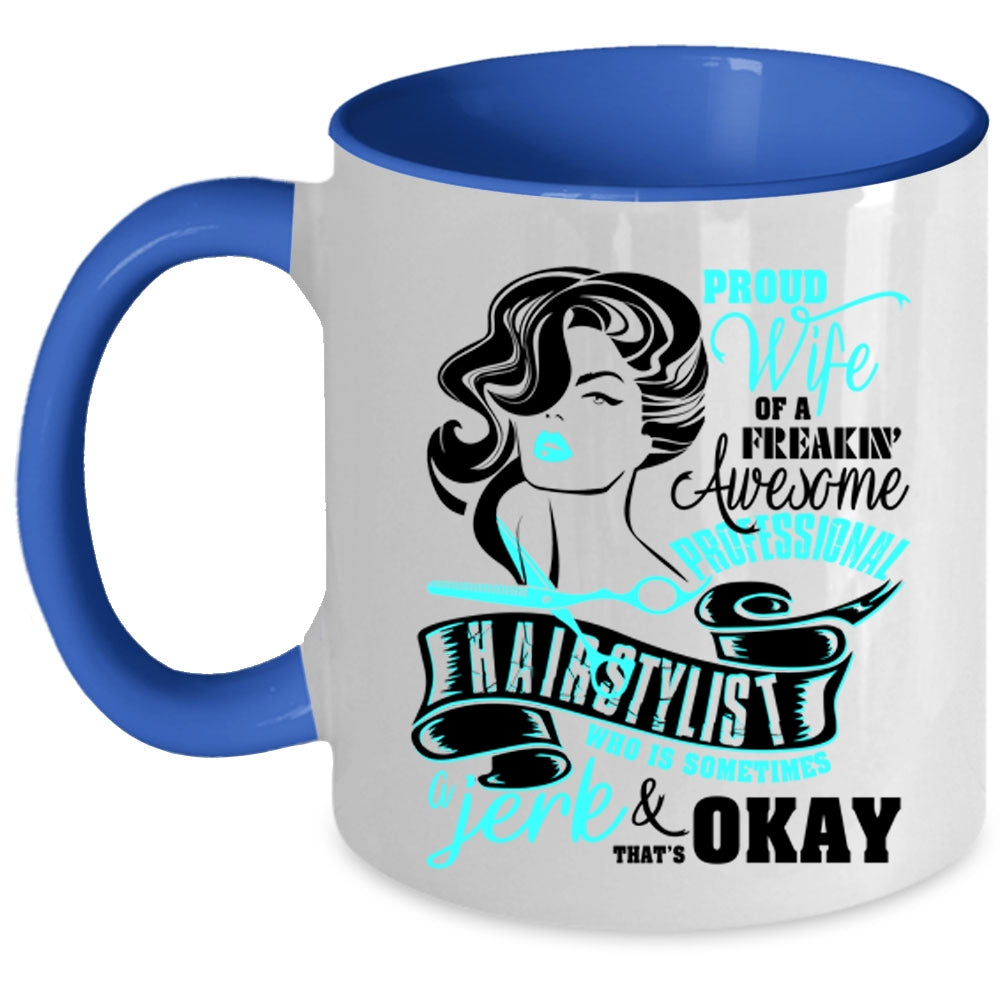 Cute Wife Coffee Mug, Proud Wife Of A Proffessional Hairstylist Accent Mug