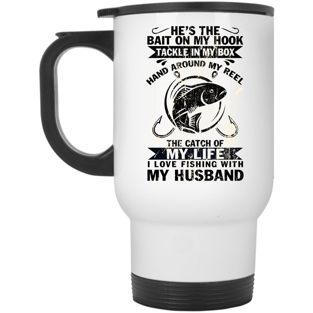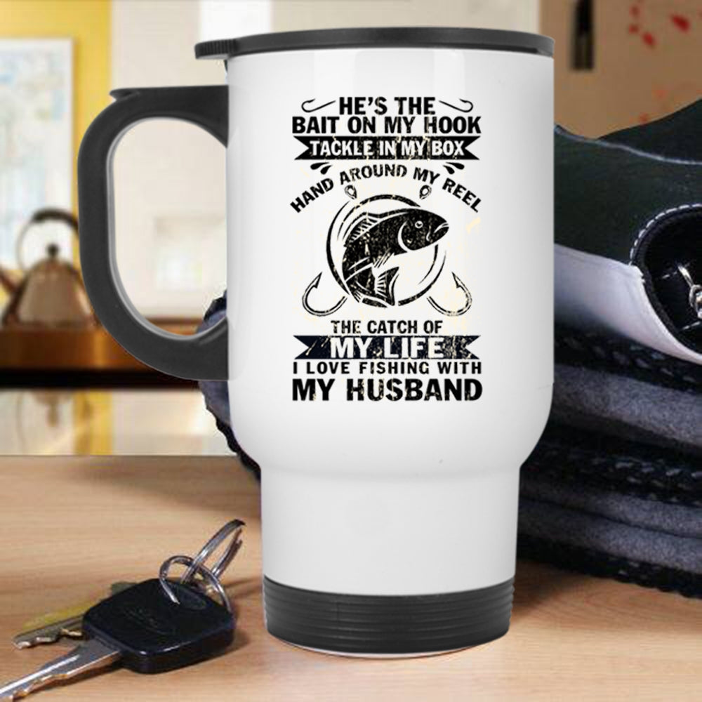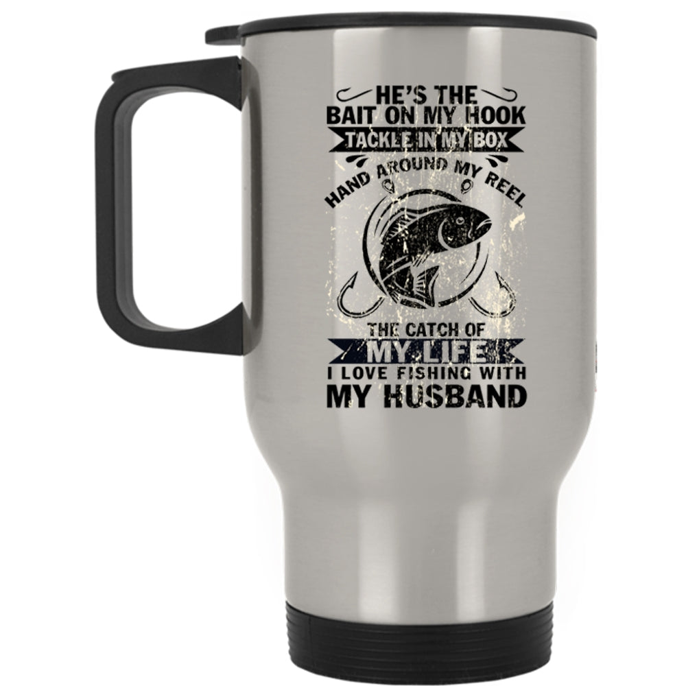 Cute Wife Travel Mug, I Love Fishing With My Husband Mug