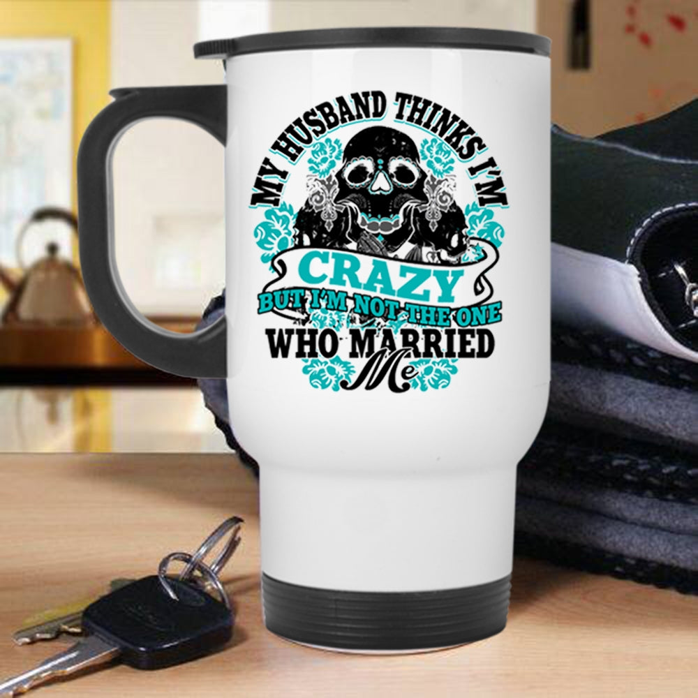 Cute Wife Travel Mug, My Husband Thinks I'm Crazy Mug
