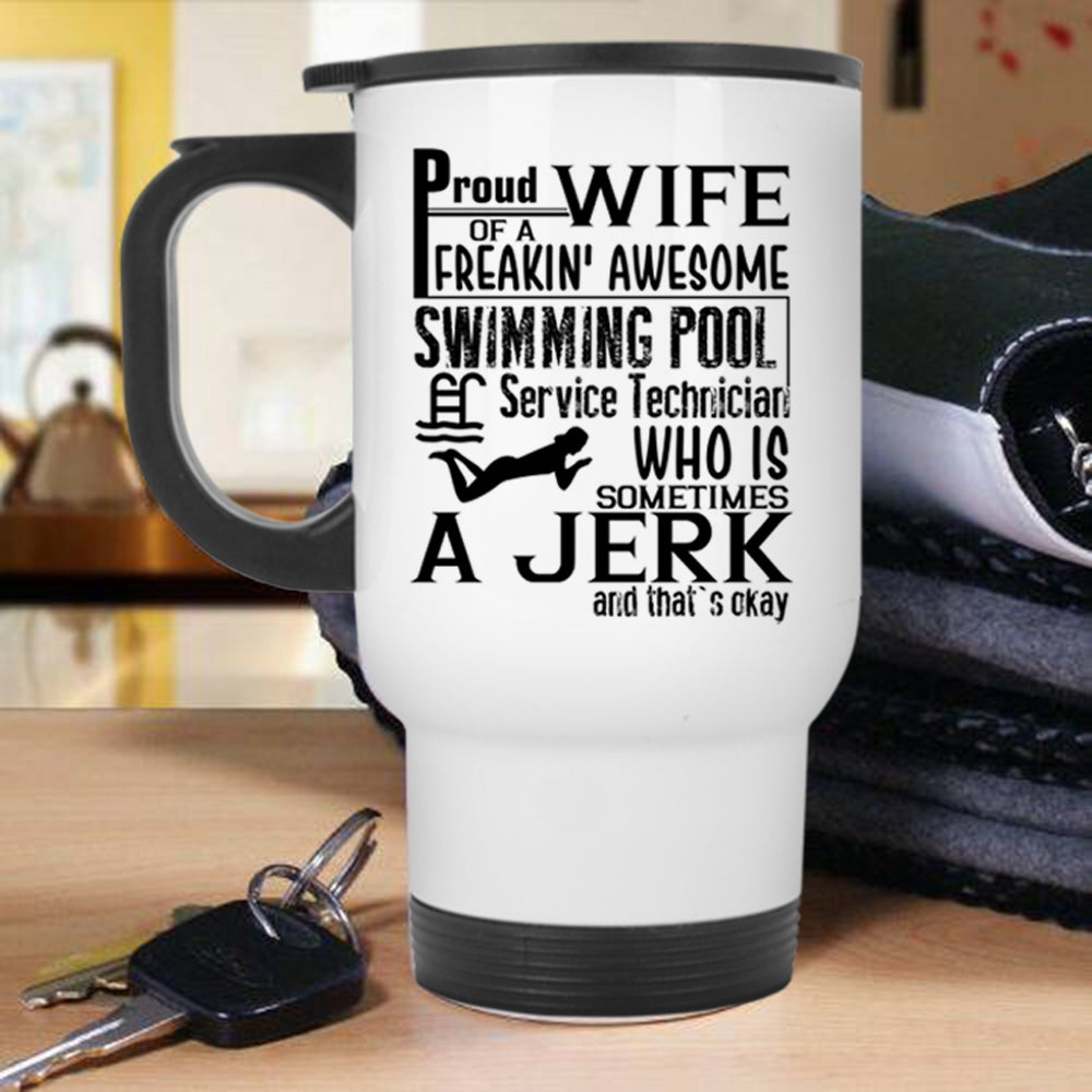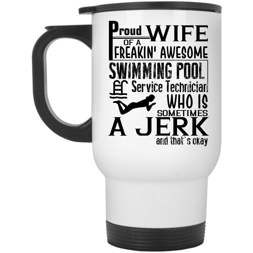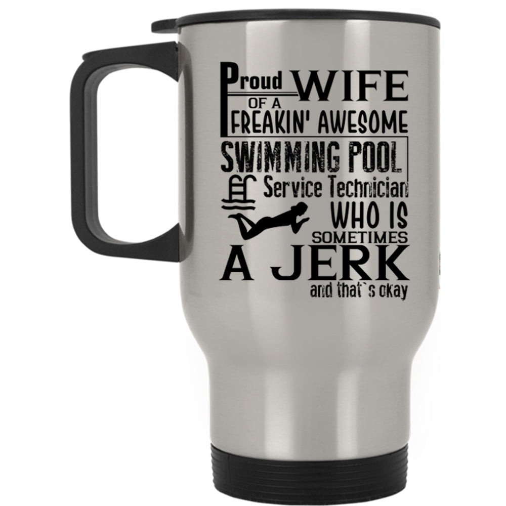 Cute Wife Travel Mug, Proud Wife Of A Swimming Pool Service Technician Mug