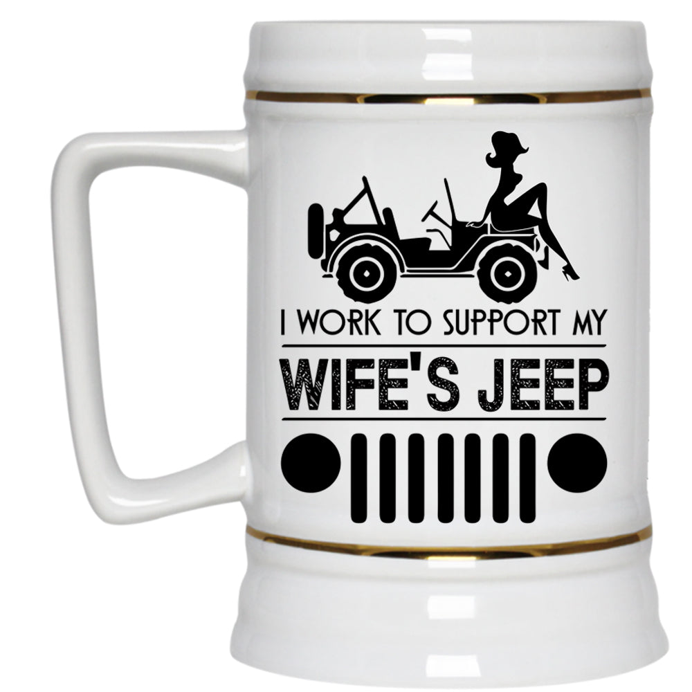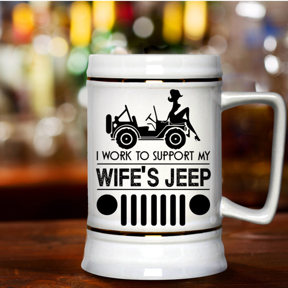 Cute Wife's Jeep Beer Stein 22oz, I Work To Support My wife's Jeep Beer Mug