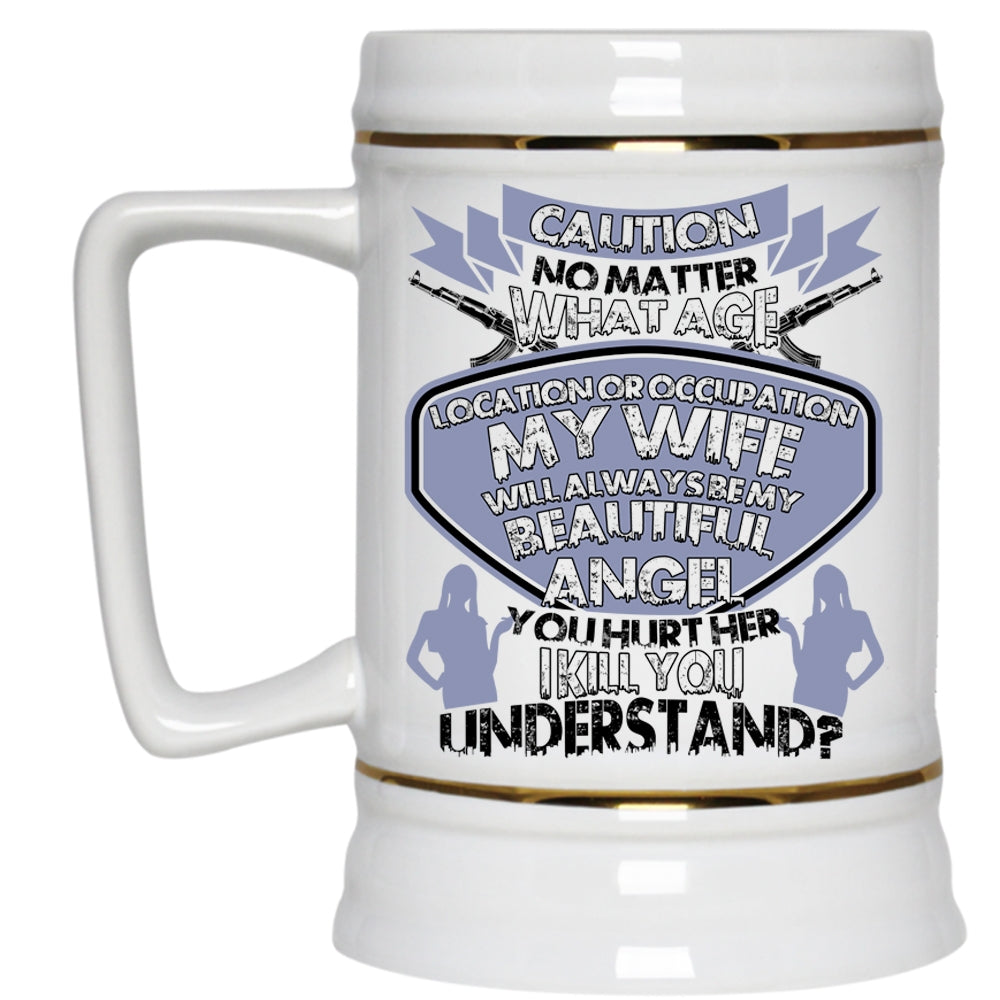 Don't Hurt Her Beer Stein 22oz, My Wife Will Always Be My Beautiful Angel Beer Mug