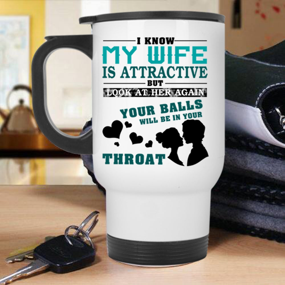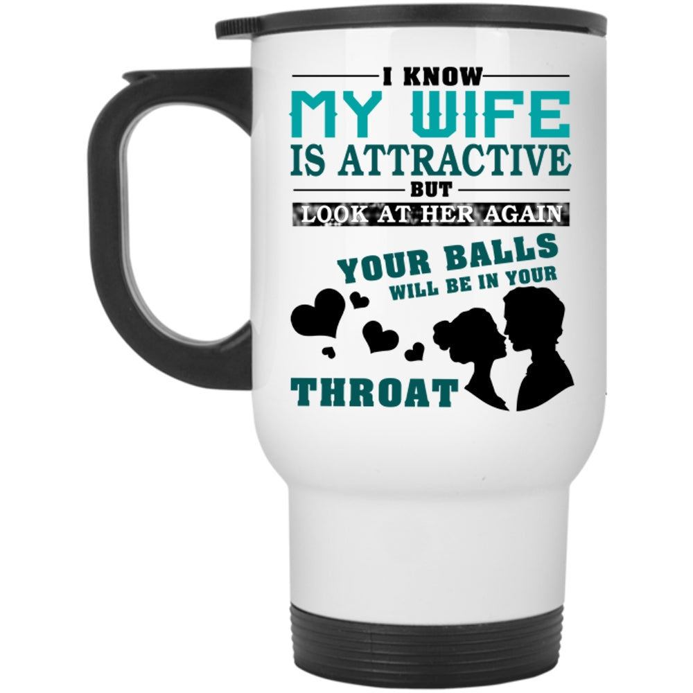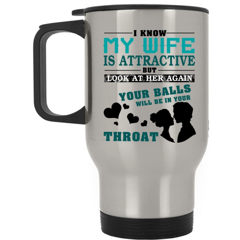 Don't Look At My Wife Travel Mug, I Know My Wife Is Attractive Mug