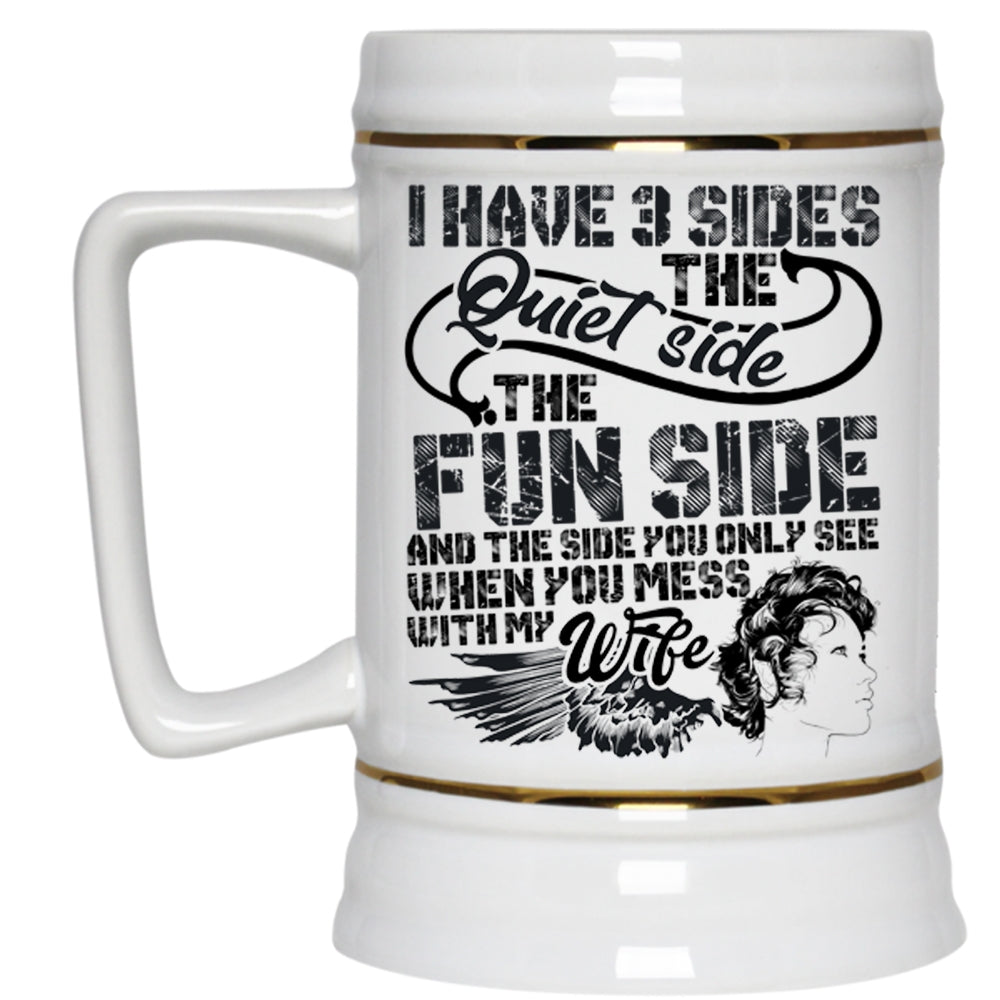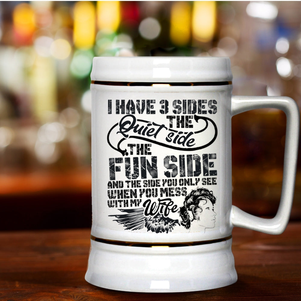 Don't Mess With My Wife Beer Stein 22oz, I Have 3 Sides Beer Mug