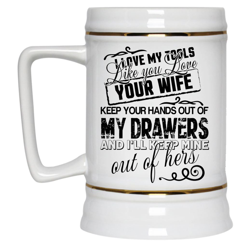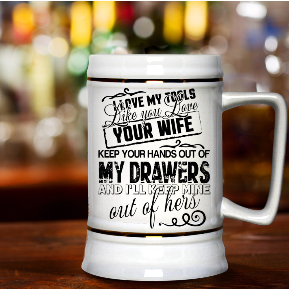 Drawers Beer Stein 22oz, I Love My Tools Like You Love Your Wife Beer Mug