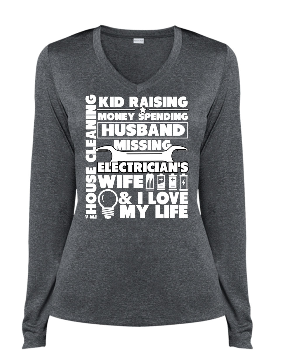 Electrician's Wife T Shirt, I Love My Life T Shirt, Cool Shirt (Ladies LS Heather V-Neck)