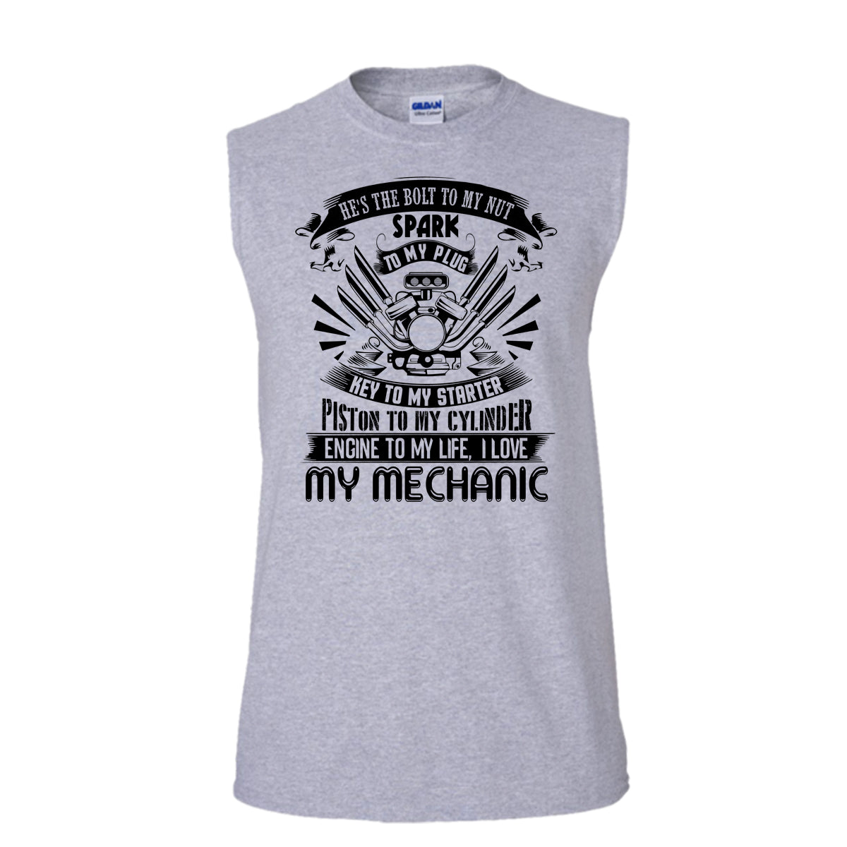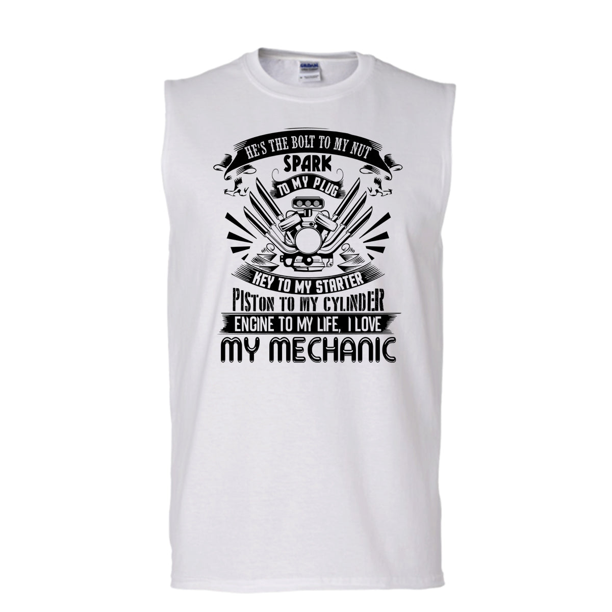Engine To My Life T Shirt, Coolest Mechanic's Wife T Shirt, Awesome t-shirts (Men's Cotton Sleeveless)