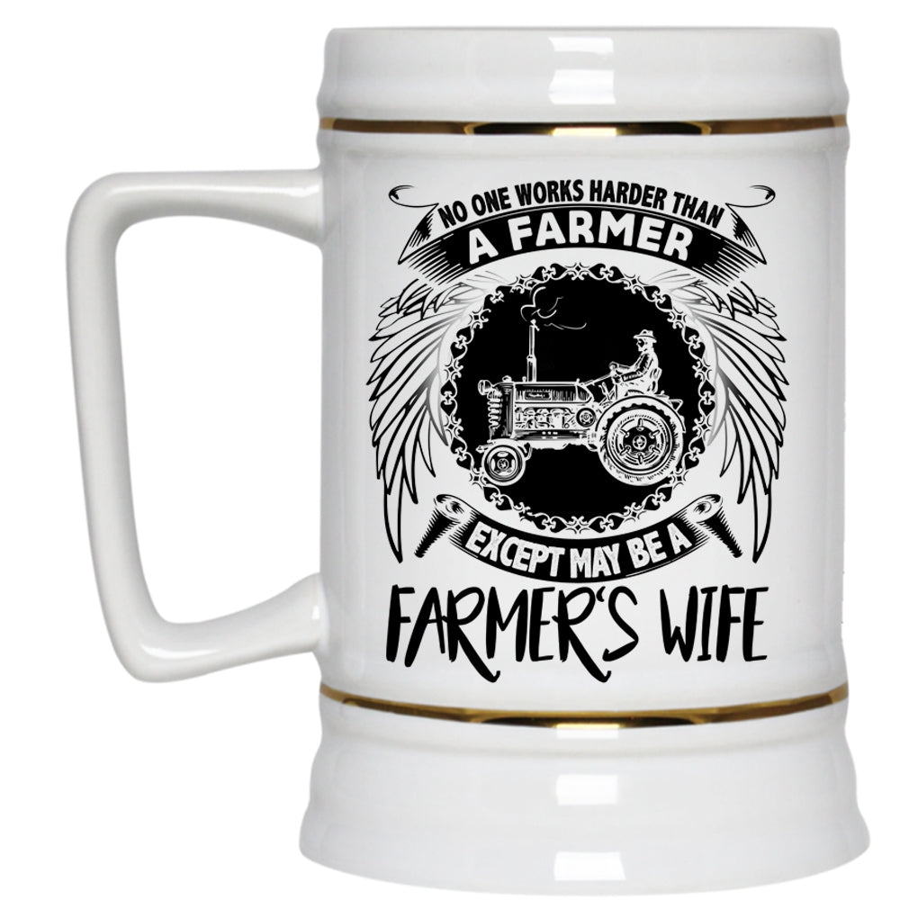 Farmer's Wife Beer Stein 22oz, No One Works Harder Than A Farmer Beer Mug