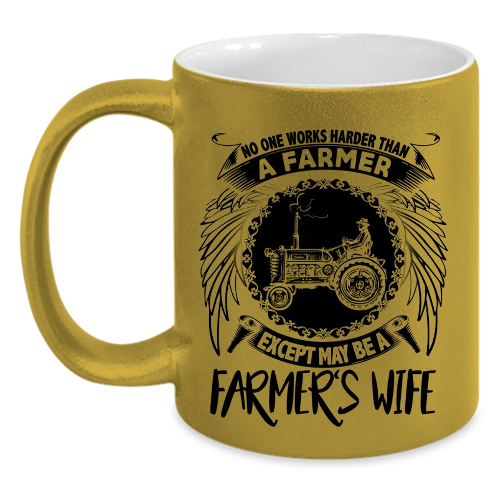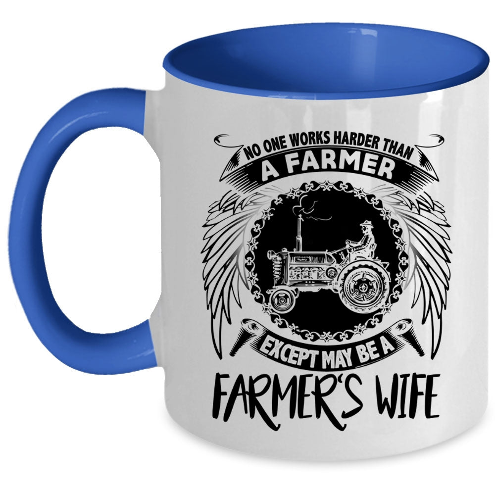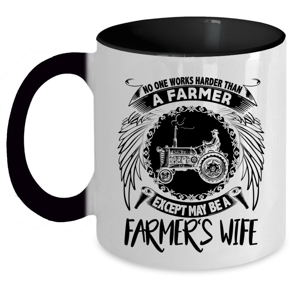 Farmer's Wife Coffee Mug, No One Works Harder Than A Farmer Accent Mug