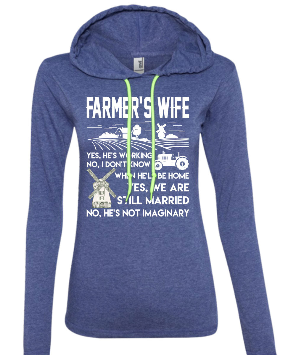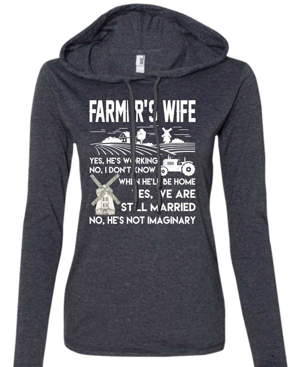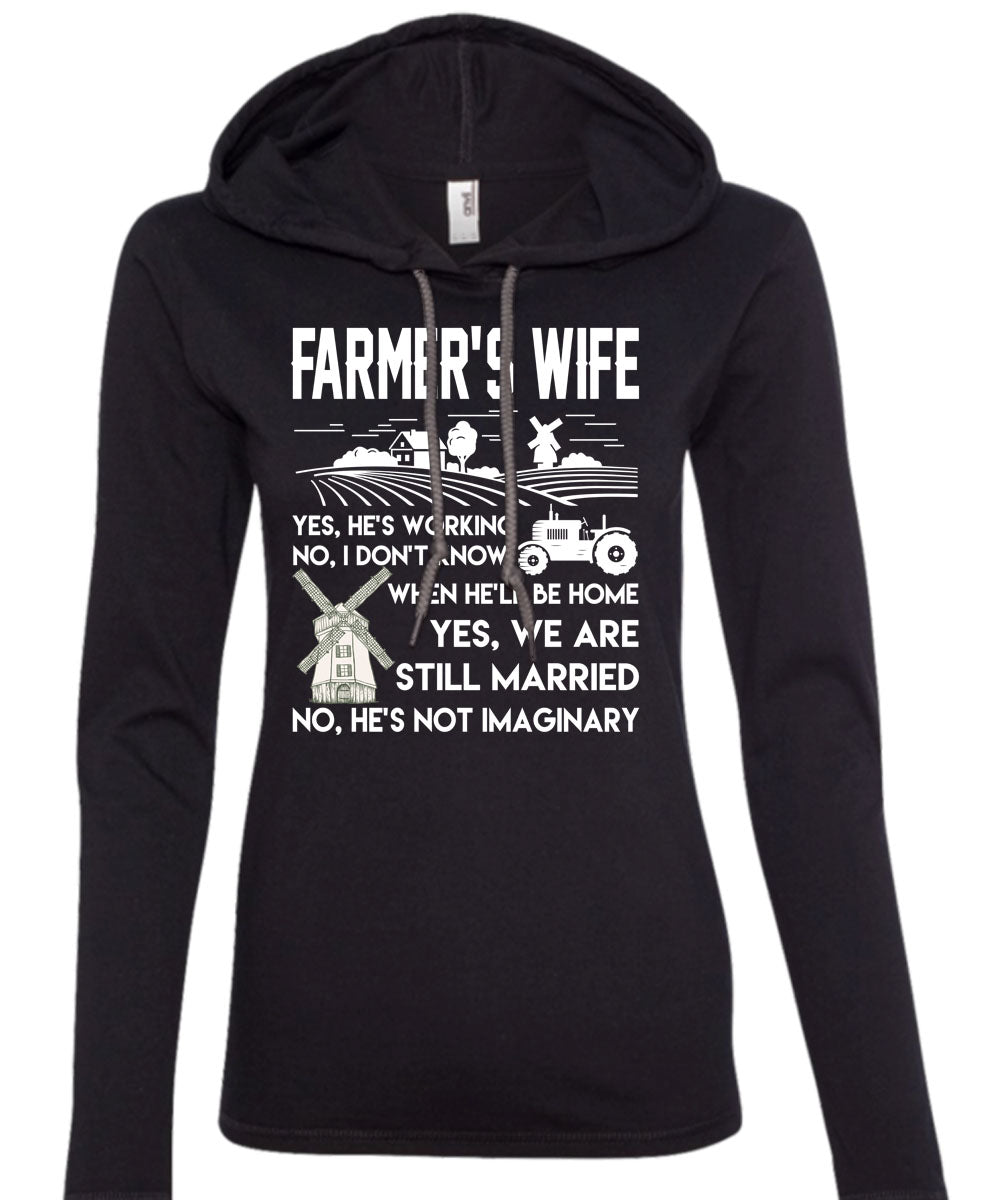 Farmer's Wife He's Working T Shirt, We Are Still Married T Shirt (Anvil Ladies Ringspun Hooded)
