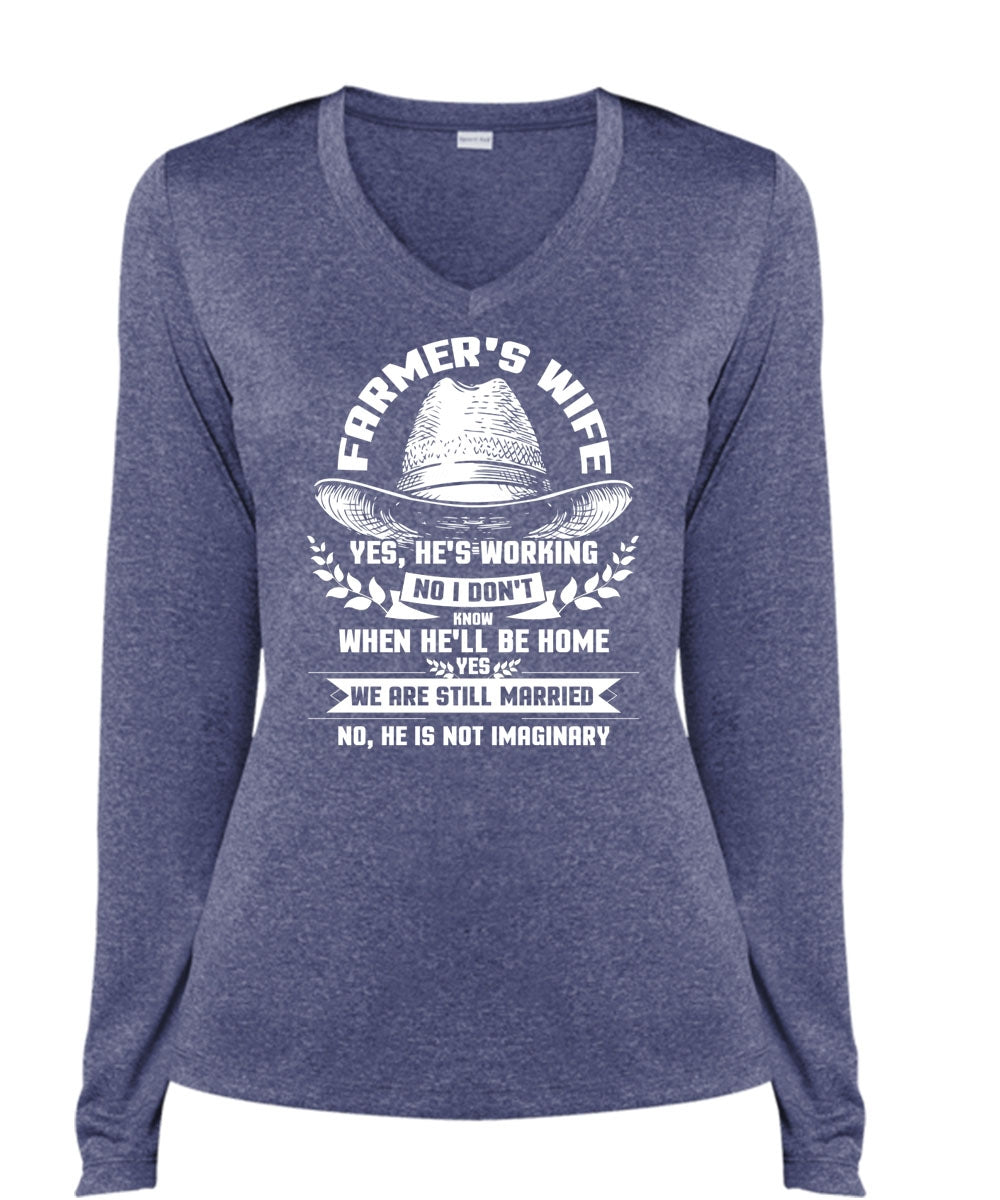 Farmer's Wife T Shirt, We Are Still Married T Shirt, Cool Shirt (Ladies LS Heather V-Neck)