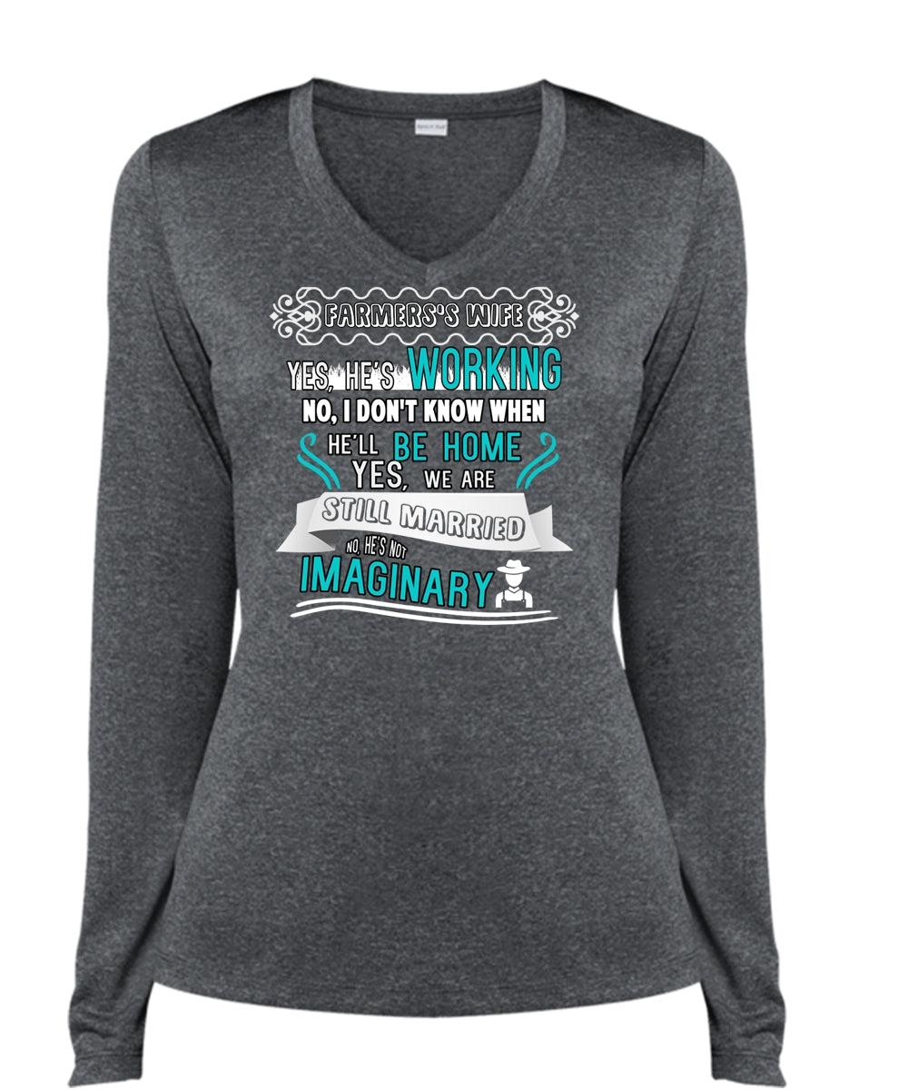 Farmers's Wife T Shirt, He's Working T Shirt, We Are Still Married T Shirt (Ladies LS Heather V-Neck)