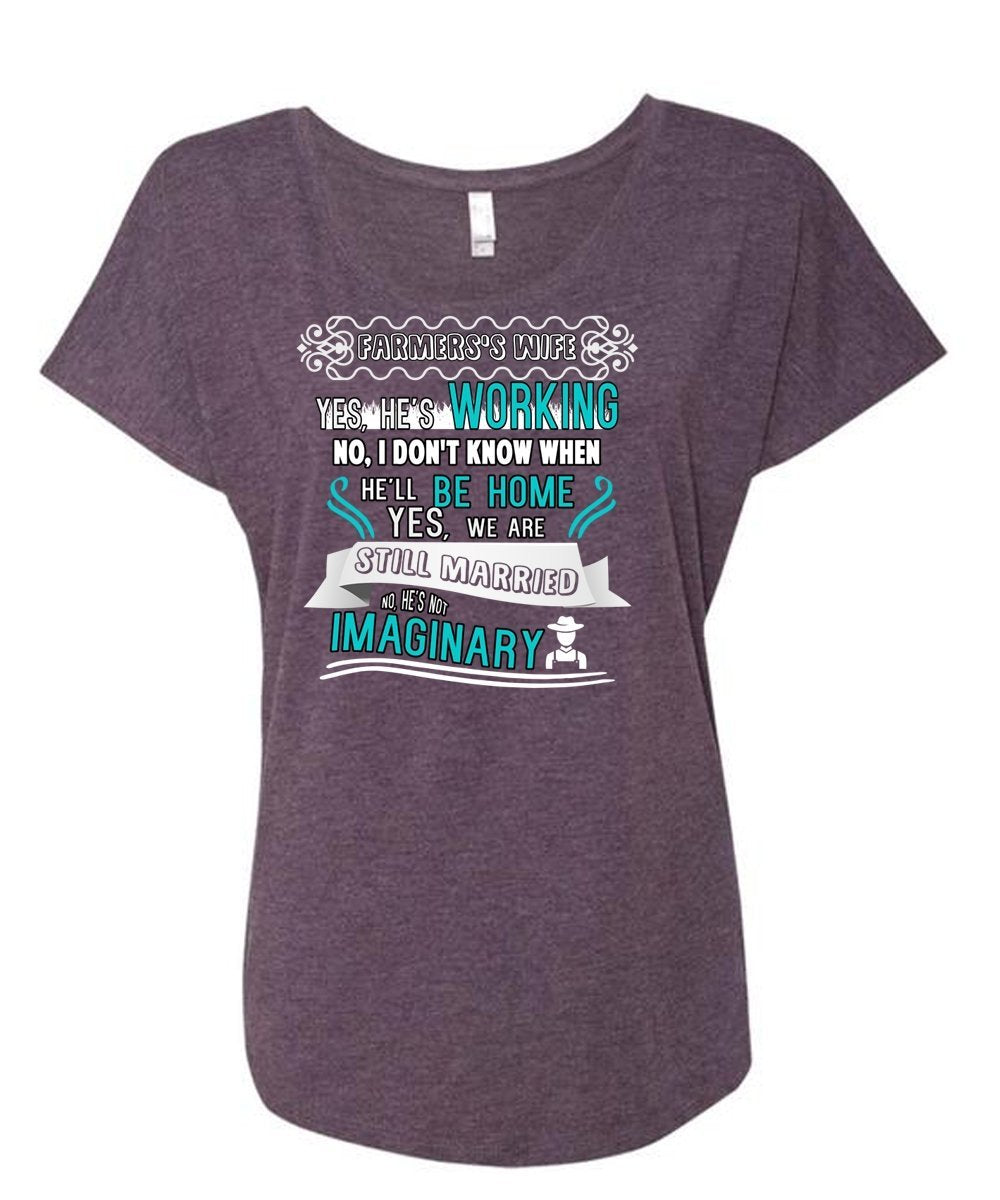 Farmers's Wife T Shirt, He's Working T Shirt, We Are Still Married T Shirt (Ladies' Triblend Dolman Sleeve)