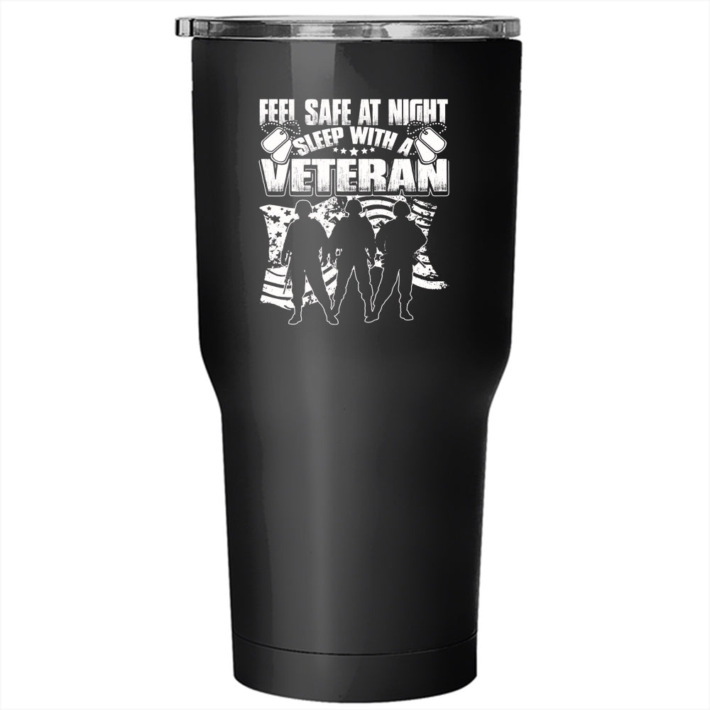 Feel Safe At Night Sleep With A Veteran Tumbler 30 oz Stainless Steel, Cool Veteran's Wife Travel Mug