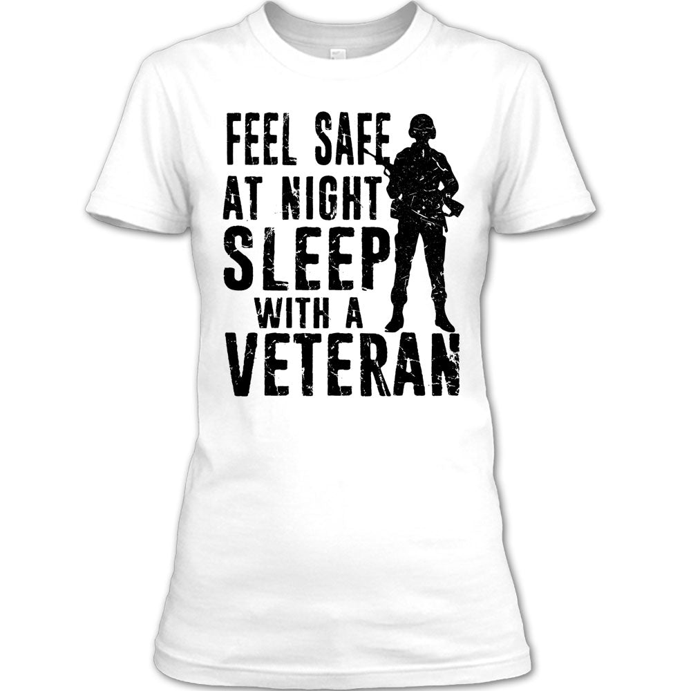 Fell Safe At Night Sleep With A Veteran T Shirt, Gift For Veteran's Wife T Shirt