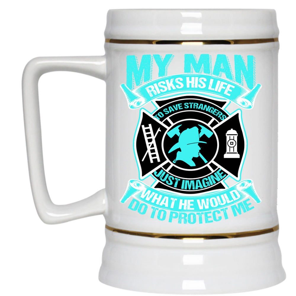 Firefighter's Wife Beer Stein 22oz, My Man Would Do To Protect Me Beer Mug