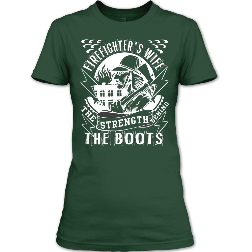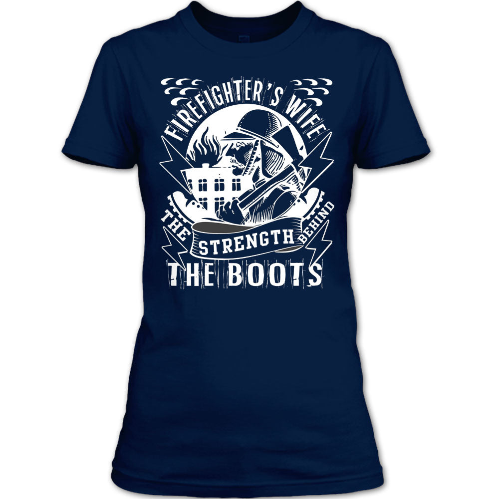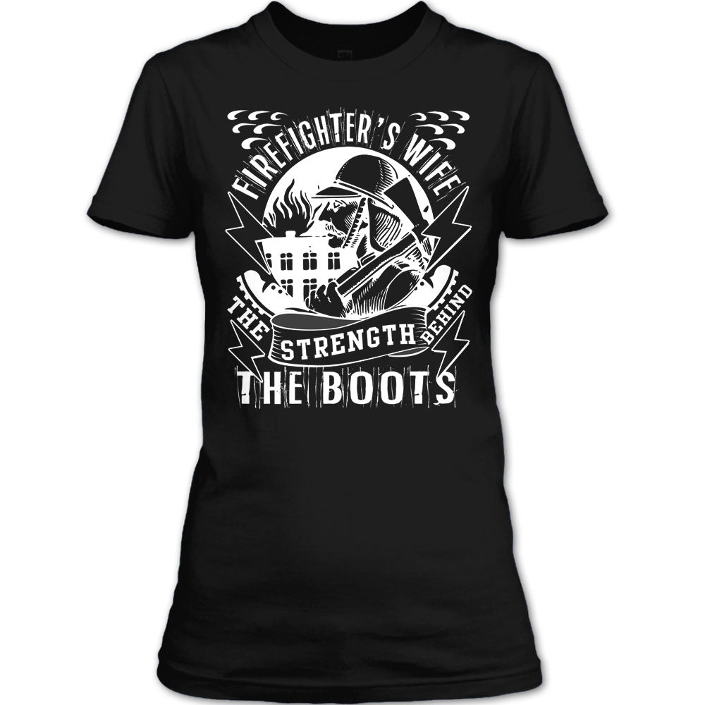 Firefighter's Wife T Shirt, The Strength Behind The Boots T Shirt