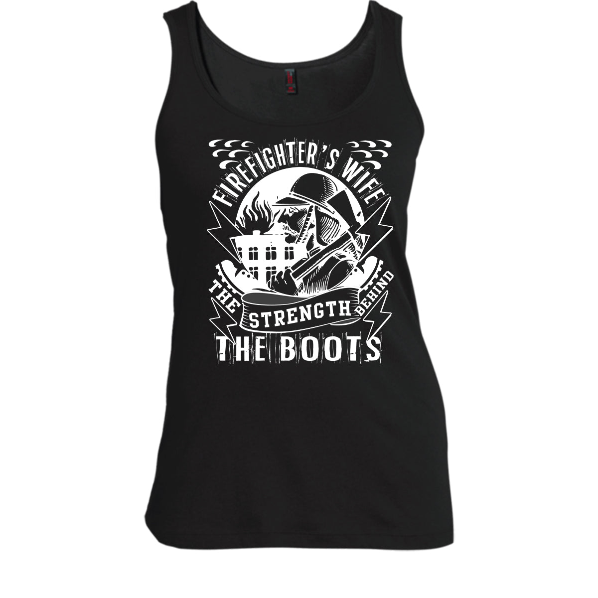 Firefighter's Wife T Shirt, The Strength Behind The Boots T Shirt, Cool T Shirt