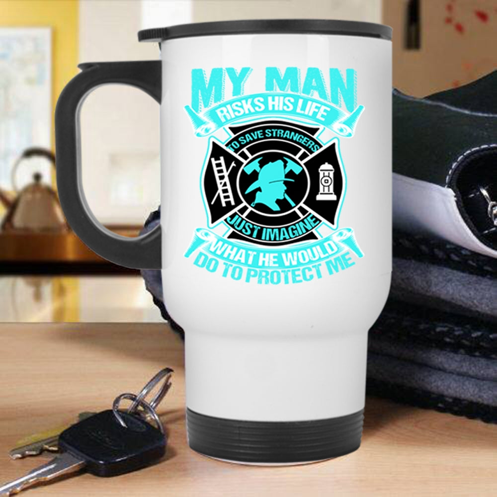 Firefighter's Wife Travel Mug, My Man Would Do To Protect Me Mug