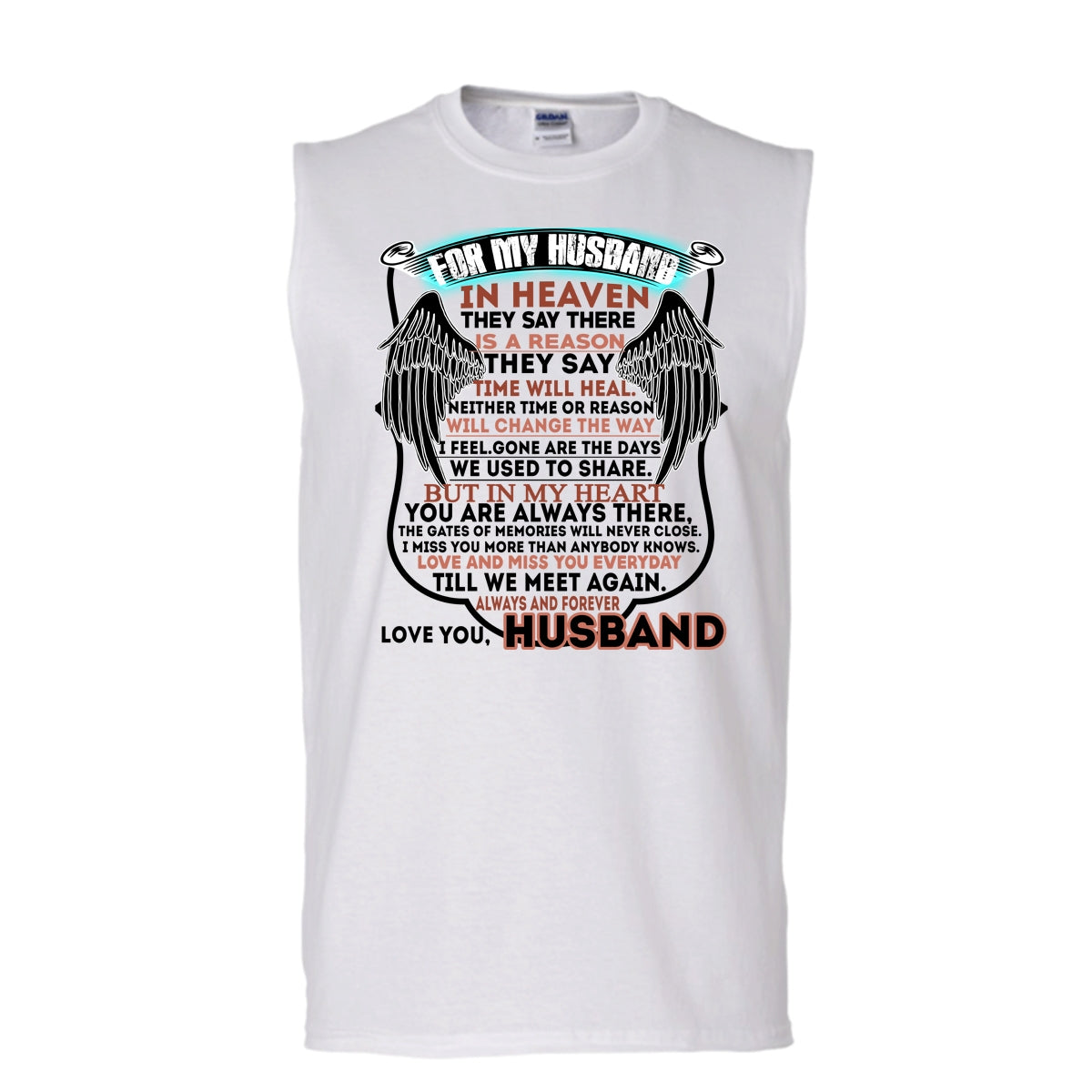 For My Husband In Heaven T Shirt, I Love My Husband T Shirt, Awesome t-shirts (Men's Cotton Sleeveless)