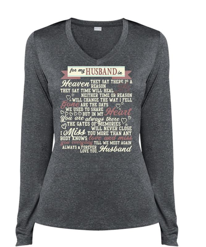 For My Husband In Heaven T Shirt, We Meet Again T Shirt, Cool Shirt (Ladies LS Heather V-Neck)