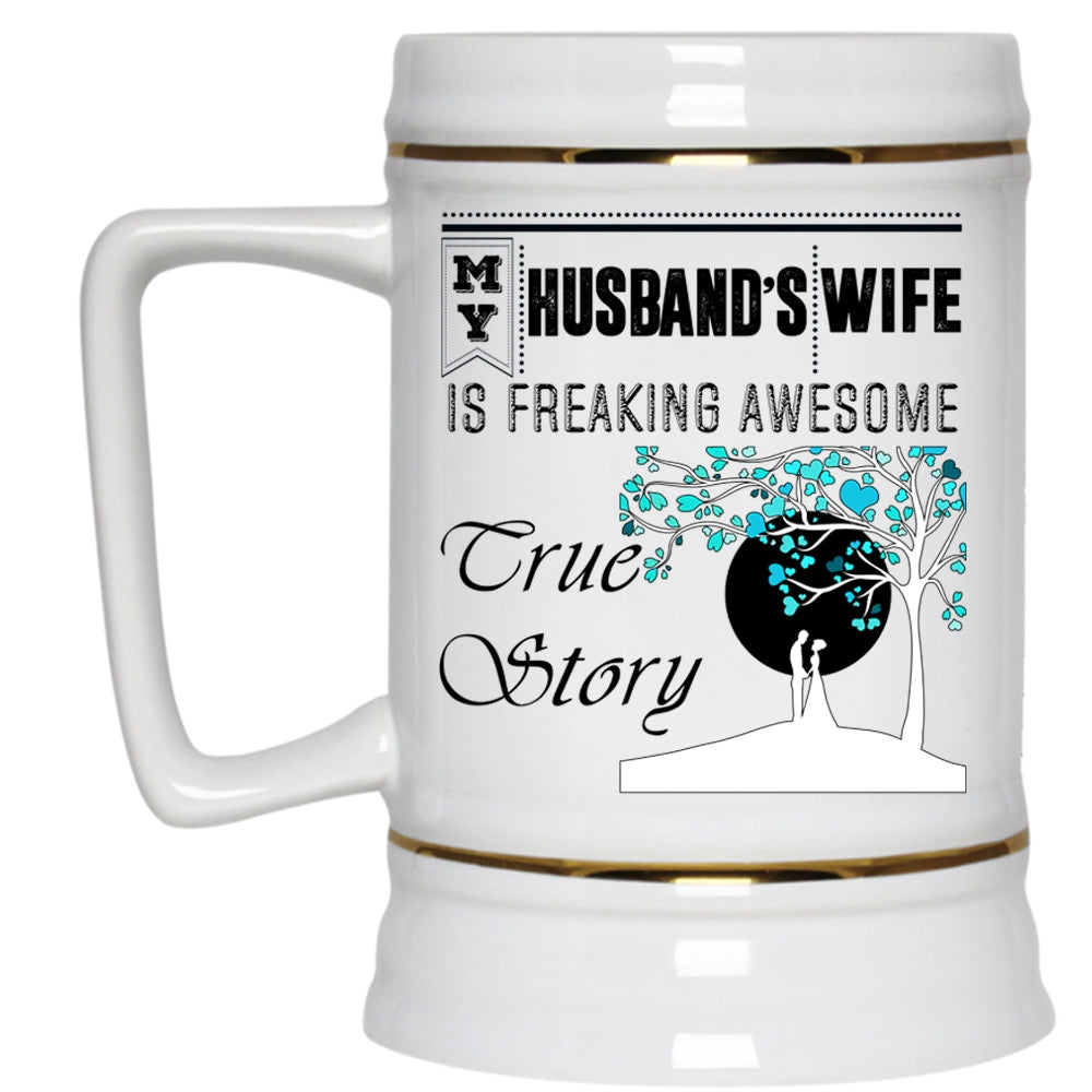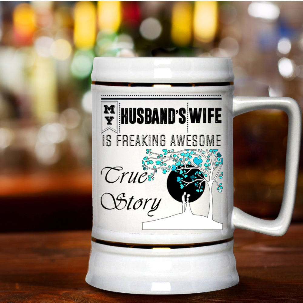 Freaking Awesome True Story Beer Stein 22oz, My Husband's Wife Beer Mug