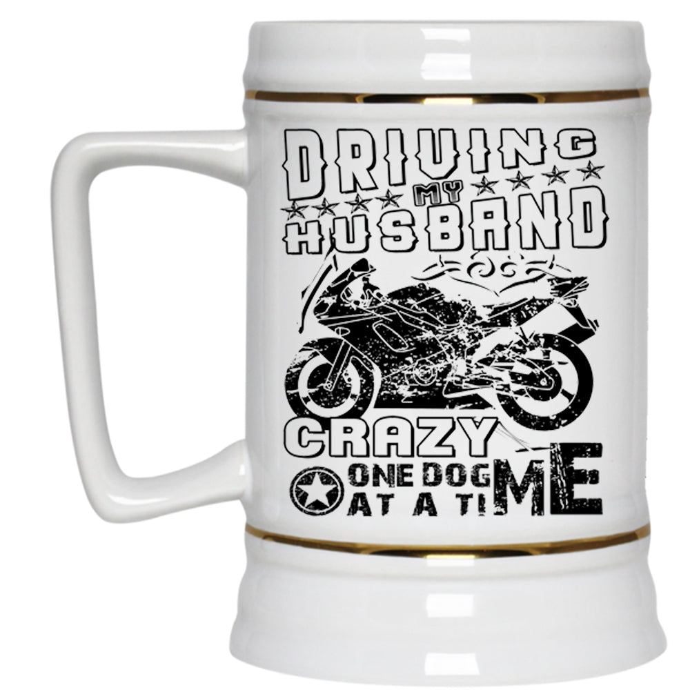 Funny Beer Stein 22oz, Driving My Husband Crazy One Dog At A Time Beer Mug