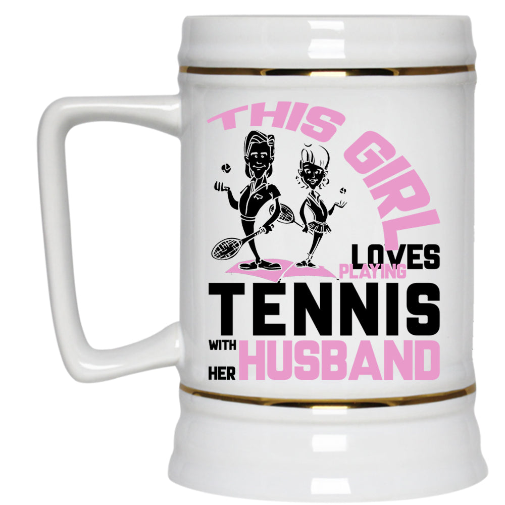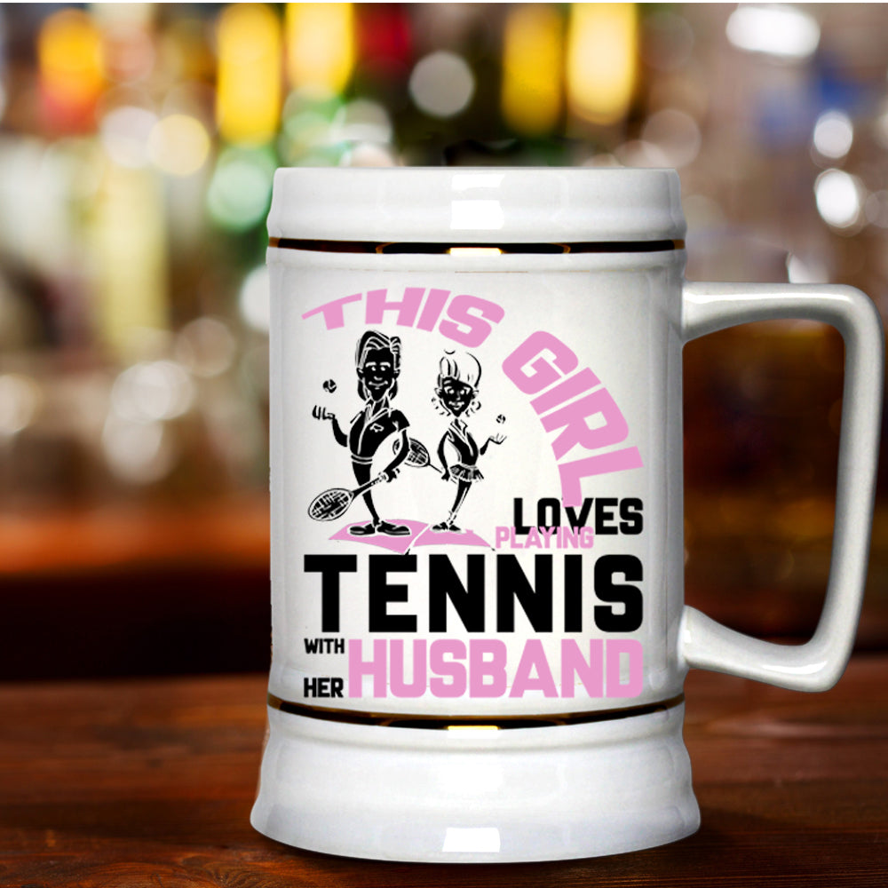 Funny Beer Stein 22oz, This Girl Loves Playing Tennis With Her Husband Beer Mug