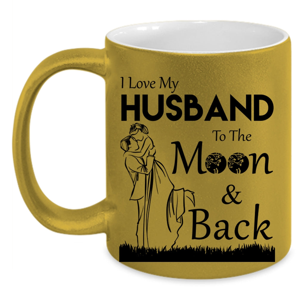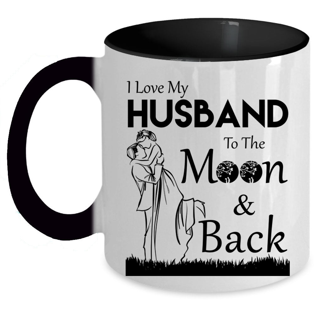 Funny Coffee Mug, I Love My Husband To The Moon And Back Accent Mug
