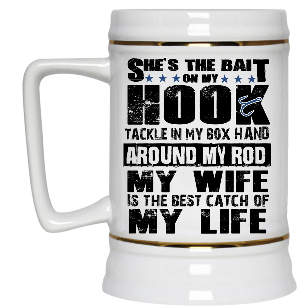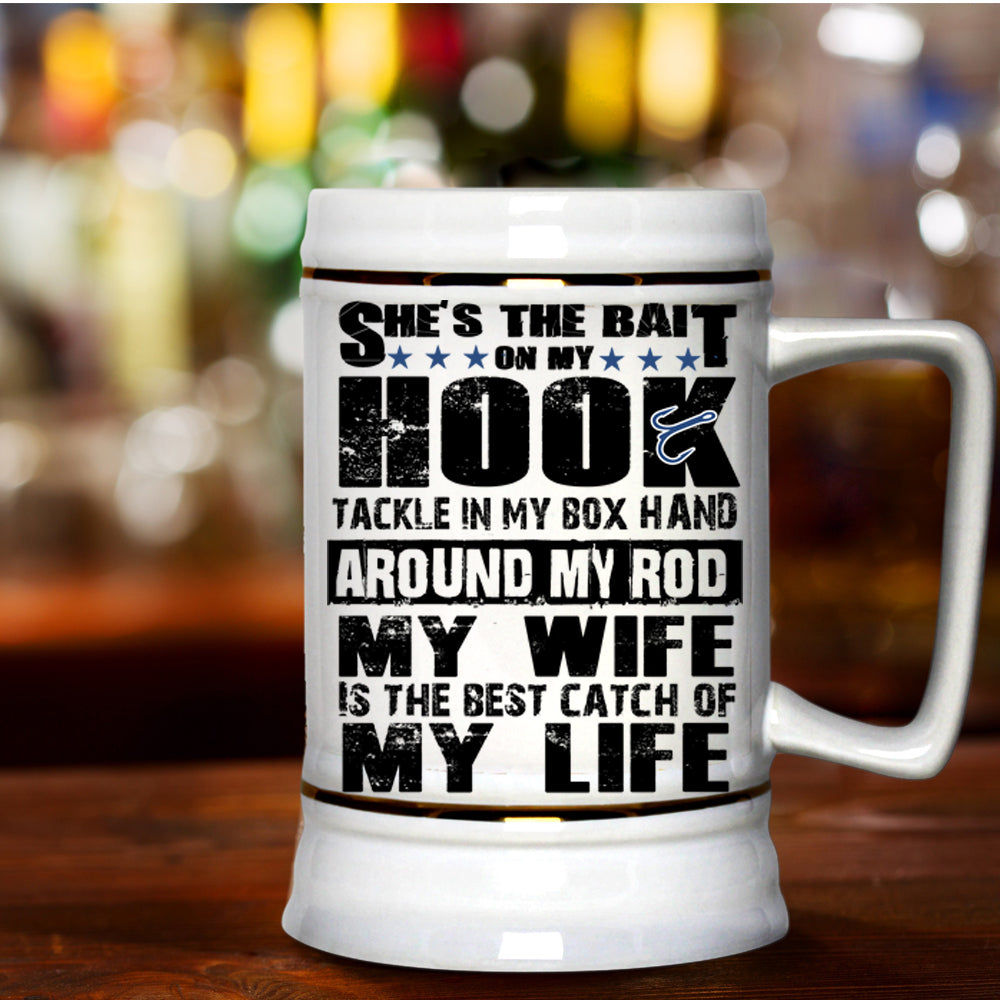 Funny Fishing Beer Stein 22oz, My Wife Is The Best Catch Of My Life Beer Mug