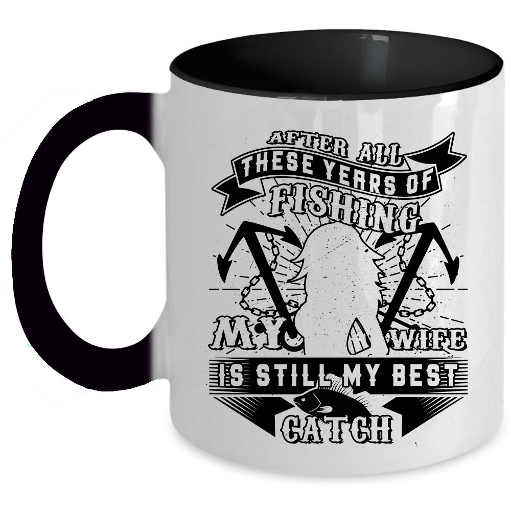 Funny Fishing Coffee Mug, My Wife Is Still My Best Catch Accent Mug