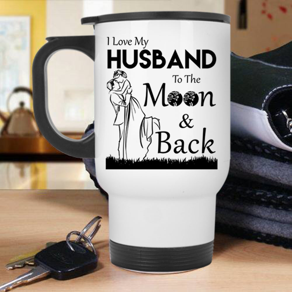 Funny Travel Mug, I Love My Husband To The Moon And Back Mug